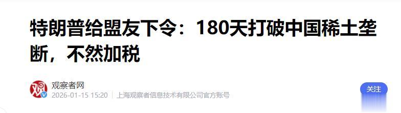 180天之内,盟友必须明确站队,要么配合美国重组稀土体系,要么就准备迎接关税、配额和一整套经济惩罚。