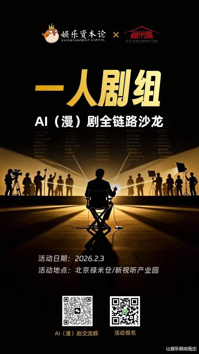 从CEIS2026中漫剧和短剧论坛的火爆就可以看出,一场“产能革命”正以降维打击之势席卷传统影视动漫圈。当单人产能足以抗衡传统剧组,当OPC(一人公司)成为新时代的代名词,你是否已拿到未来的入场券?2月3日下午,北京·禄米仓,娱乐资本论继续举办《一人剧组:AI(漫)剧全链路沙龙》。我们继续邀请大模型产品负责人与漫剧转型先锋,闭门分享AI(漫)剧产业革命中落地的SOP与真金白银的ROI。这不是一场简单的商业探讨,而是影视工业的“生存进化论”。席位有限,切勿在风口爆发前夜缺席。