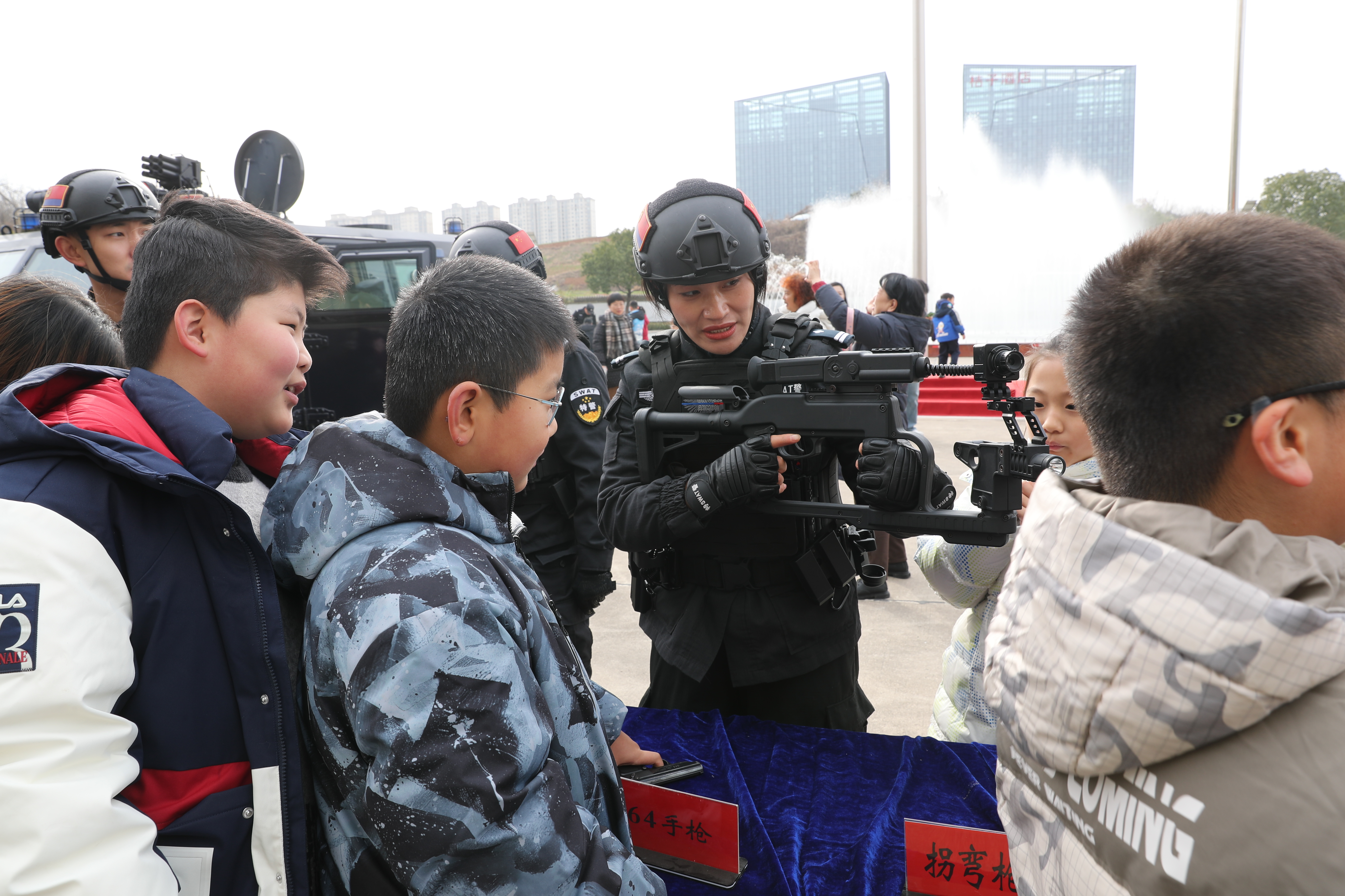 装备展示区内,高精度狙击枪、电击枪、水上救援机器人等多款硬核警用装备集中亮相,成为小朋友们争相围观的焦点。特警队员现场讲解装备性能与实战应用,并邀请群众近距离体验,直观展现了信阳公安守护平安的坚实底气与过硬本领。