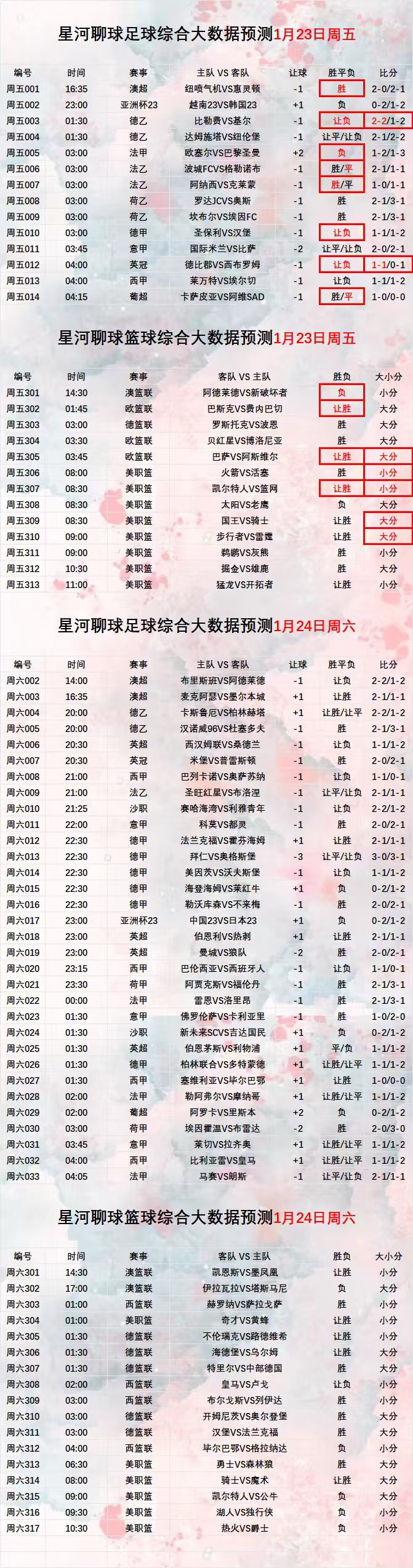 2026年1月24日 【星河聊球足球篮球扫盘】五大联赛 美职蓝 中国23 VS 日本23