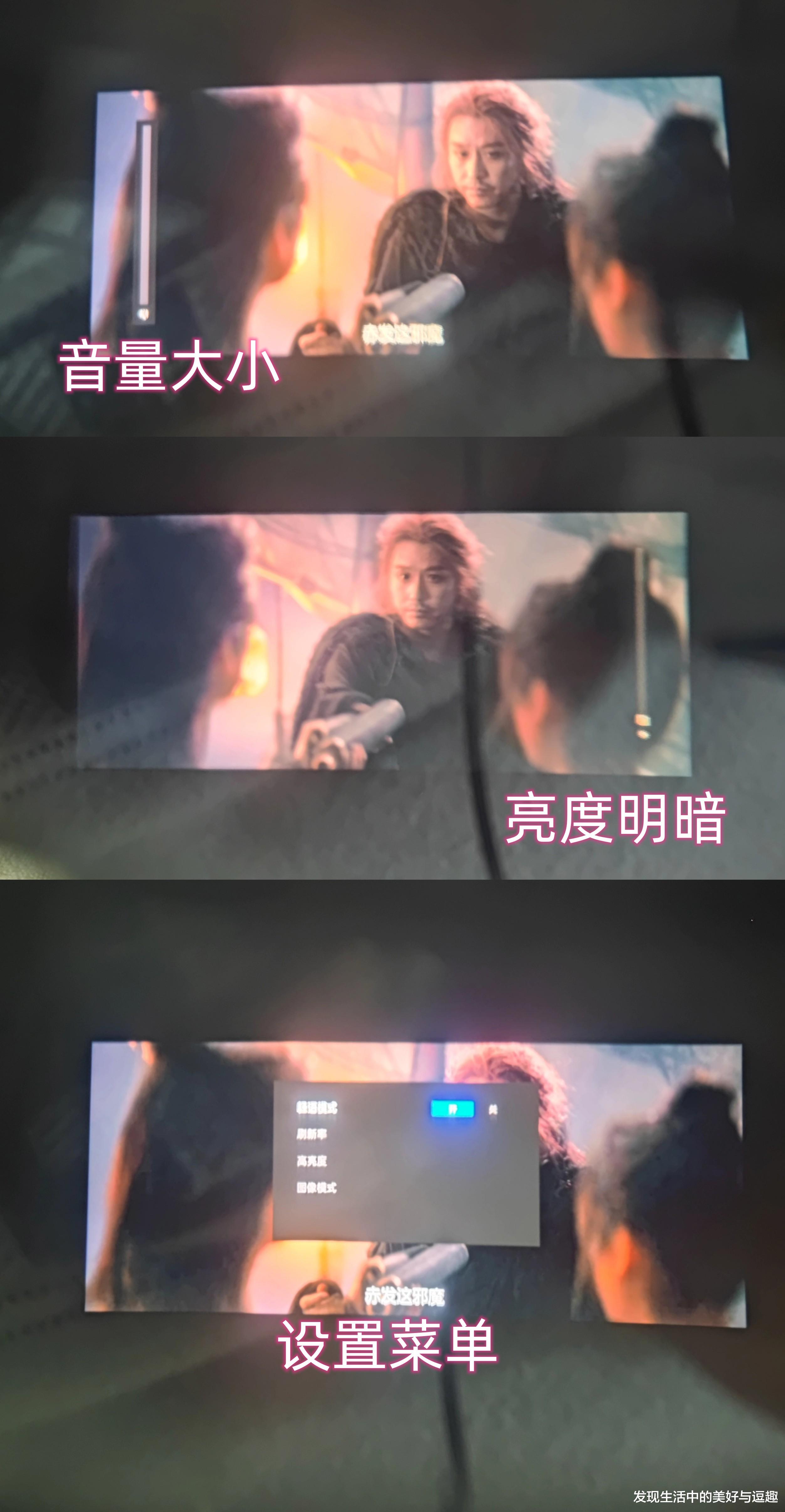 左手音量调节处多了一个设置键。可设置轻语模式、60及120hz转换、高亮模式、画面情景模式(分为标准、专业、电影、游戏、护眼)。