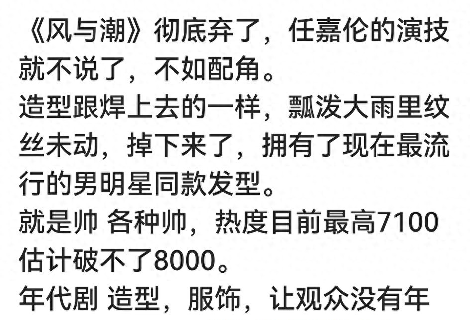 好剧从不惧流言,《风与潮》也会用实力证明,真正的佳作,经得起时间的检验,也对得起观众的期待。那些尬黑的声音,终究只是过眼云烟。