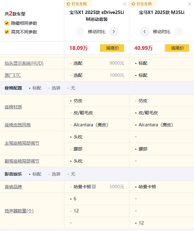 配置上,M35Li标配哈曼卡顿12扬声器,比sDrive25Li的6个喇叭音质强太多,开车听歌更舒适。加上抬头显示、原厂ETC都是标配,不用额外花钱选装,实用性更高,日常用车省不少事儿。