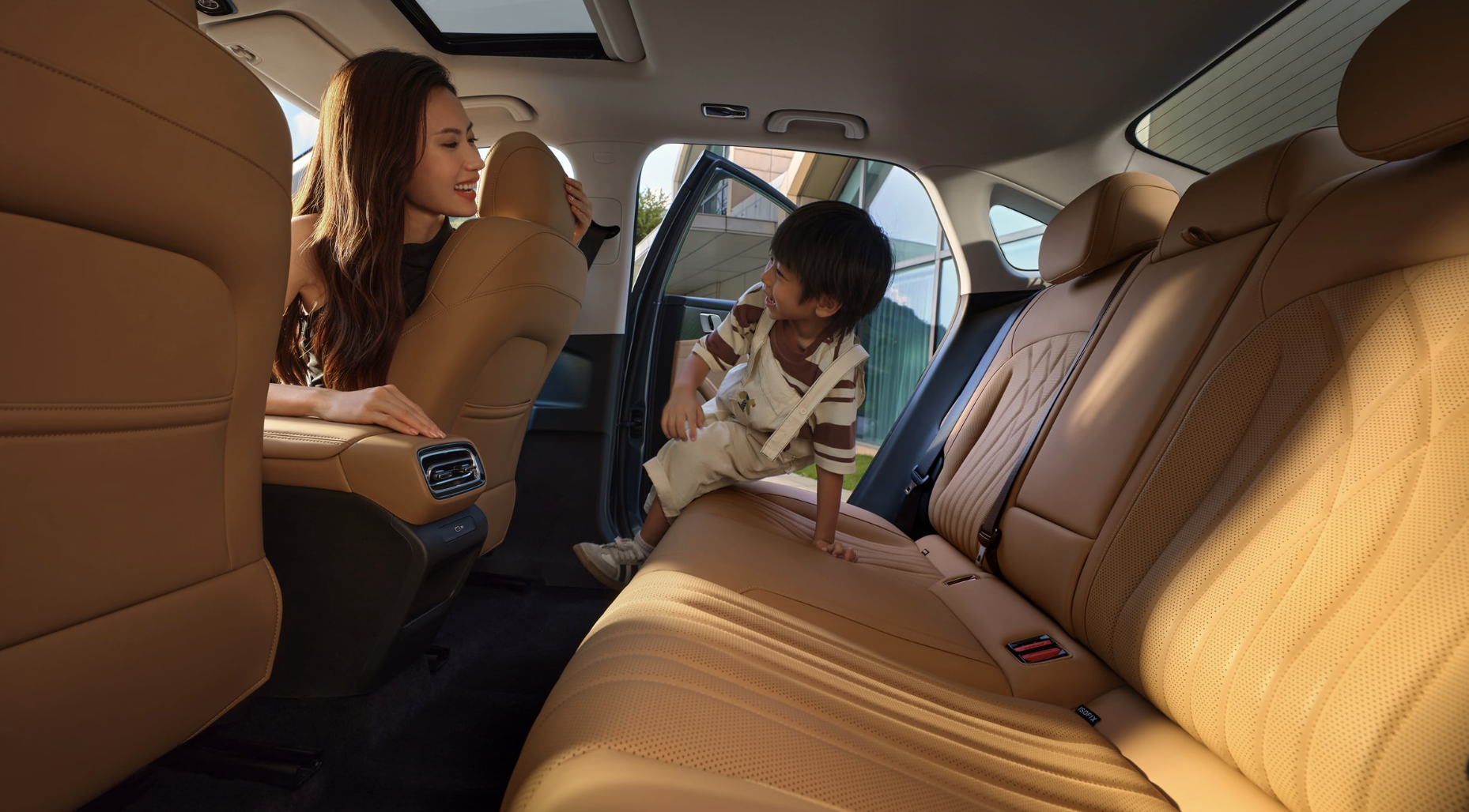对于坐在后排的老人和孩子来说,宽敞的空间就是最好的舒适保障, 4806mm×1886mm 的车身尺寸,搭配 2756mm 的长轴距,打造B 级车的越级空间,让老人久坐不闷,孩子能在后排轻松活动,不用一直蜷着身子;灵活的空间布局,能放下婴儿车、老人的轮椅,细节处的贴心设计,让全家人的出行都更方便。后备箱能装下所有年货和行李,父母塞的土特产、给孩子买的礼物,都能统统装下,让团圆的心意不打折扣。
