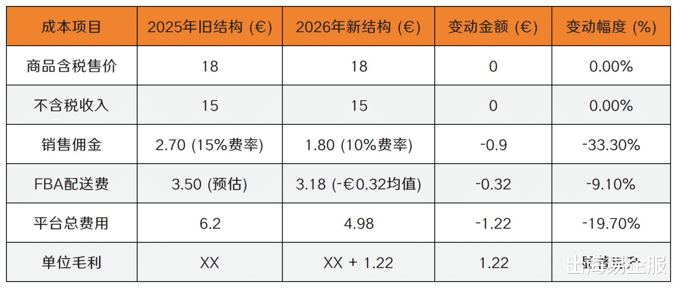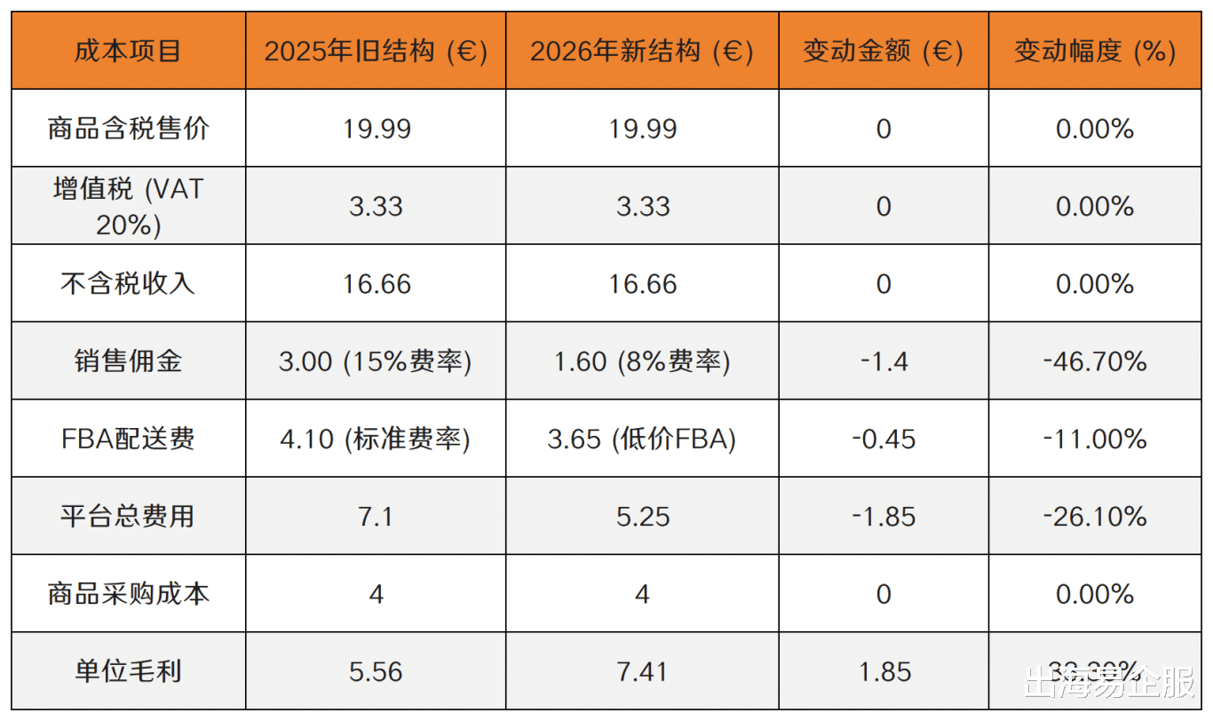 对于非VAT注册的微型卖家(特别是在英国,因亚马逊实体变更导致需缴纳20% VAT且不可抵扣的情况 ),费用降低是双重利好:既降低了运营成本,又降低了不可抵扣的VAT税负。