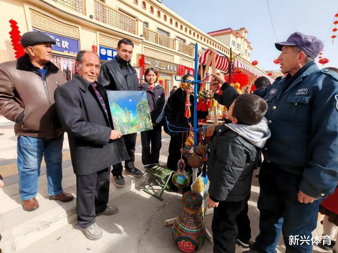 2月8日中午,春天的暖阳照在洛浦县年货大集上,人们在这里载歌载舞,也为即将到来的春节购买年货。56岁的图尼亚孜·托合提铁木尔一家四口在舞台的正对面摆好了摊位,他们一家人制作手绘葫芦艺术品吸引了不少人的目光。