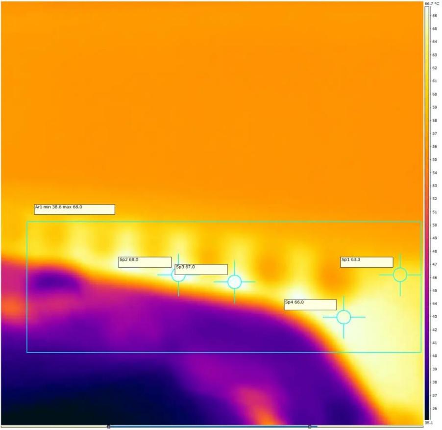 实测中,即使在锐龙9 9950X3D处理器持续满载、功耗突破250W的严苛条件下,供电模组的关键测温点仍稳定维持在70℃以下的理想区间,体现了其在极端负载下的温度控制能力。这种设计不仅保障了瞬时性能释放,更确保了长期高负载工作时的系统稳定性。