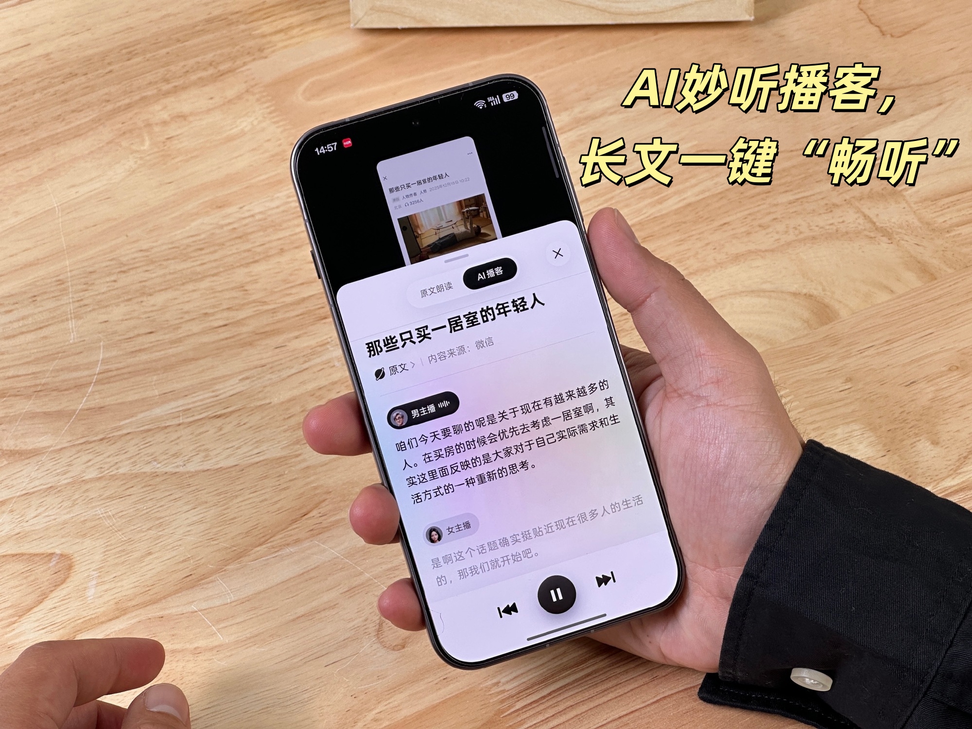 AI妙听-AI播客:现在能把长篇新闻或文章,直接转换成有声播客,而且是男女声对话模式,通勤路上听更自然,算是解放双手了。