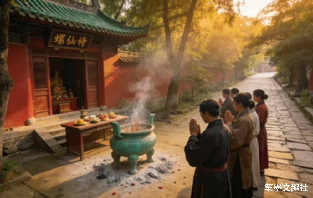 少女不仅操持家务无微不至,还将精巧的农耕技巧教给村民,村子渐渐富足安乐。后来邻村蝗灾蔓延,少女引来飞鸟群吞噬蝗虫,保住了一方田地。村民们感念她的恩德,在村头修建螺仙祠供奉。