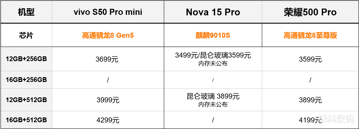 二、华为nova 15 Pro 对比 vivo S50 Pro mini、荣耀500 Pro