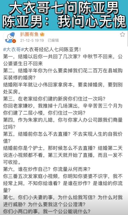 这些问题可以说是字字诛心,大衣哥一家人也不再配合她的拍摄,之后被问起这件事也只能说一句“家门不幸”。