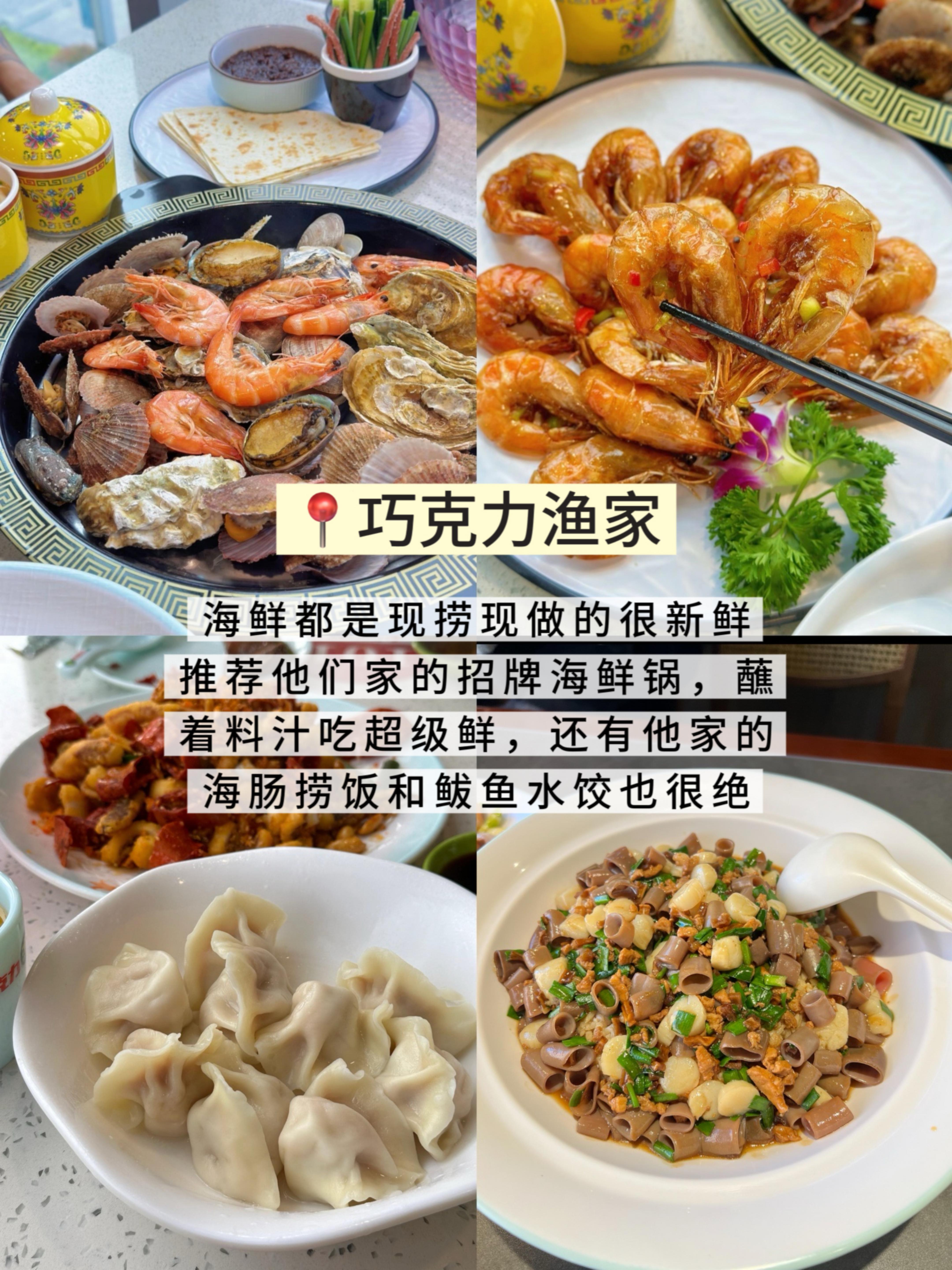 他们家的招牌海鲜锅,蘸着料汁吃超级鲜,还有海肠捞饭和鲅鱼水饺也很绝