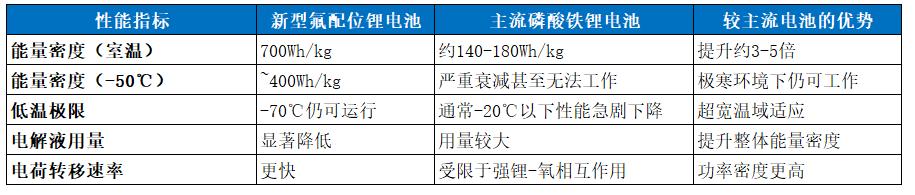 值得注意的是,该电池并非固态电池,其电解质仍是液态的。之所以有这么高的能量密度和耐低温能力,是因为在电解质上做了改进,采用氟配位替代传统锂-氧配位电解液体系,打破了两个世纪以来电解液设计的传统范式。