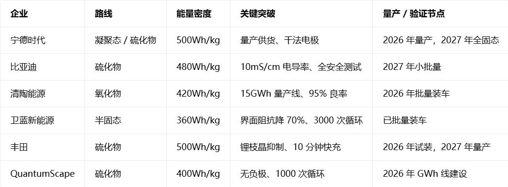 紧随其后的比亚迪在全固态电池领域已进入中试量产+车规验证+试装车阶段,是全球少数完成全流程验证并明确量产时间表的车企,整体进度国内领先,进入全球第一梯队。