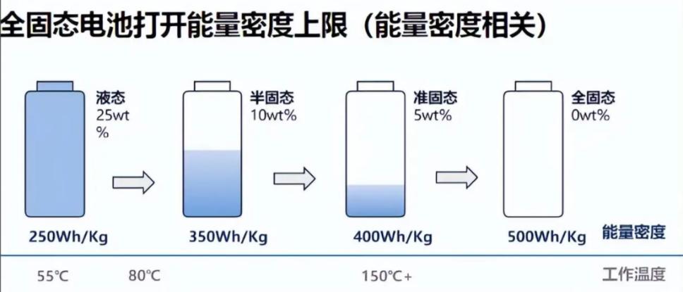 主流磷酸铁锂电池的能量密度一般不超过200Wh/kg,三元锂一般不超过300Wh/kg,当下刚火的半固态电池能量密度预计也不超过400Wh/kg,而全固态电池实验室水平预计可达到400–600Wh/kg。