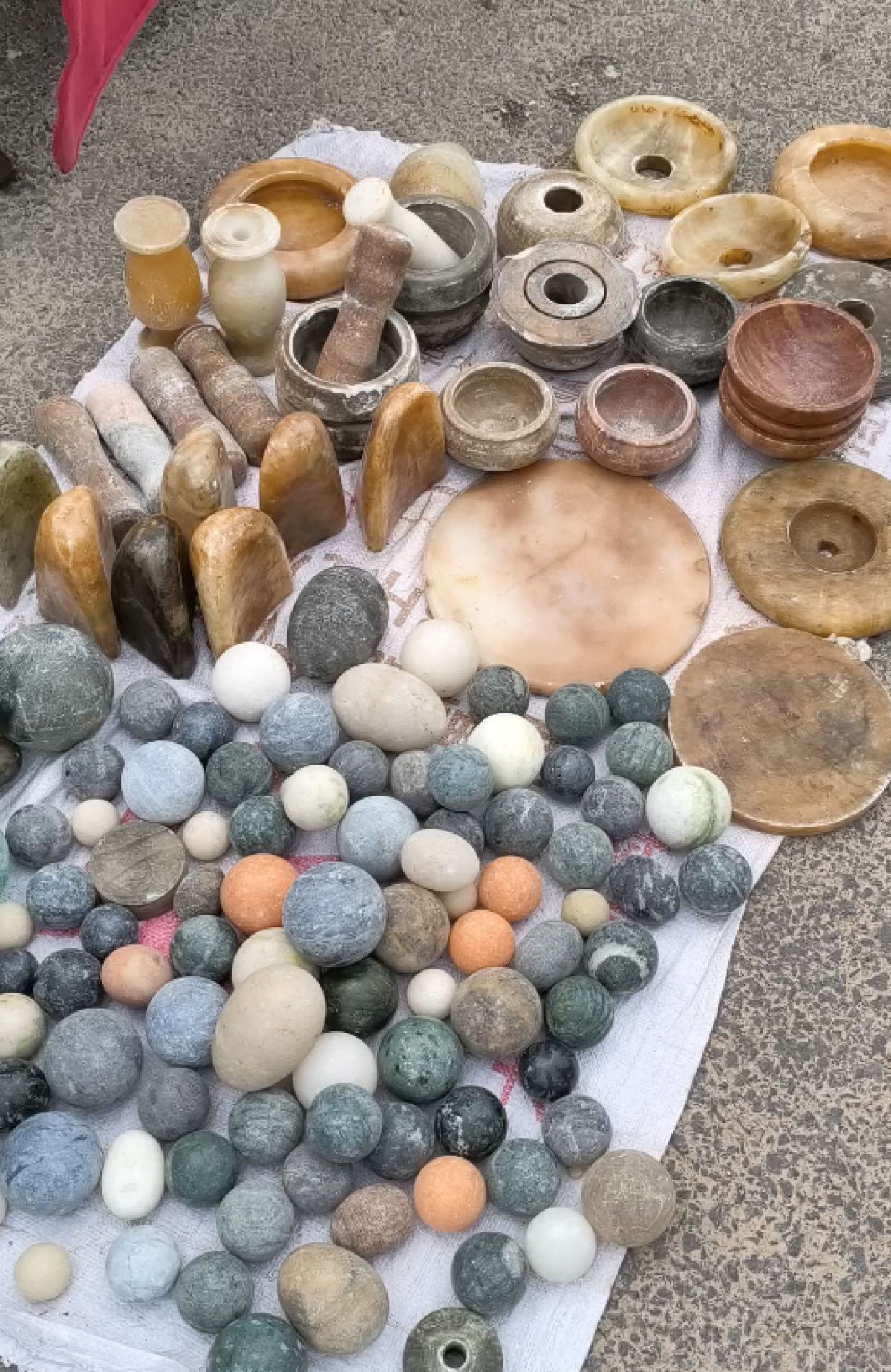 不少中年顾客则在各式玉石手串、摆件等摊位前流连徘徊。