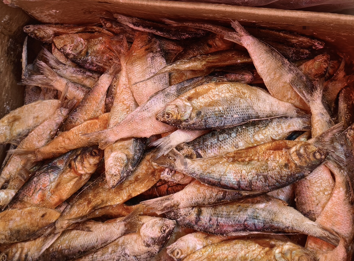 腌咸鱼也是庙会上的特色。一排排咸鱼油光锃亮,摊主用粗粝的手翻晒着鱼干:“都是捞的鲜鱼,腌得透,吃着香!”伸手摸了摸鱼干,质地紧实,咸香气息直往鼻子里钻。