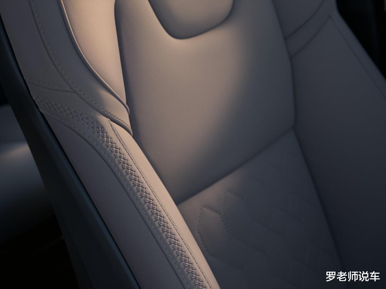 给我这种感觉主要是它的用料,车里大面积都是皮质软性材料,搭配直纹胡桃木饰板,还有金属装饰,难得的是,金属镀铬装饰件都达到了珠宝认证的标准,织物达到了内衣级的材质标准,PVC材料也达到了婴儿用品的可接触级别,所以新车坐进去一点味道没有,沃尔沃一直称座舱都是环保材料打造,没有新车味,这一点确实没得喷,就算我趴到皮子上闻,都没有异味,这种用料才放心让老人孩子乘坐。这也是沃尔沃才有的优势。