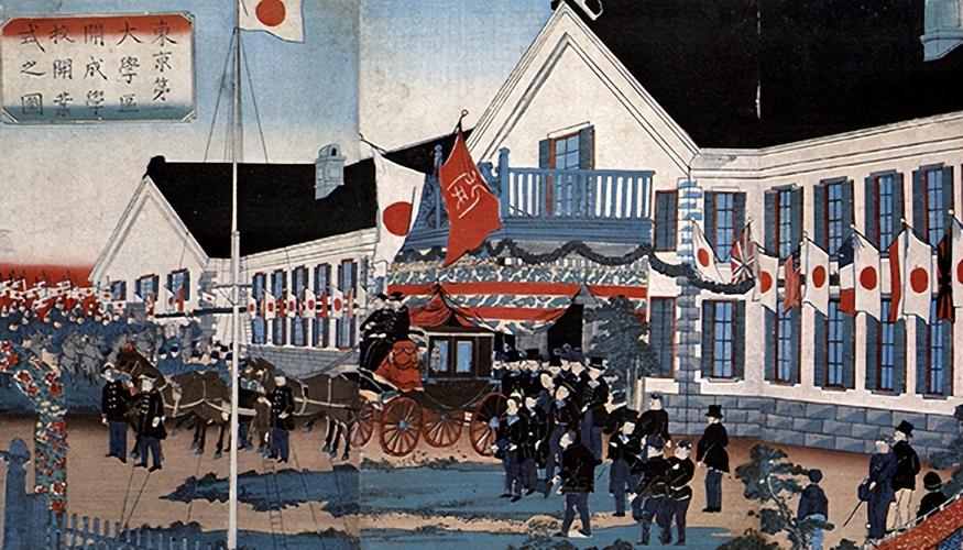 1868年,明治维新时期,日本政府开始了一场改革运动,旨在重建国家并现代化它。这次改革的核心是开放国家的大门,接受西方国家的思想和文化,并将它们融入日本社会。