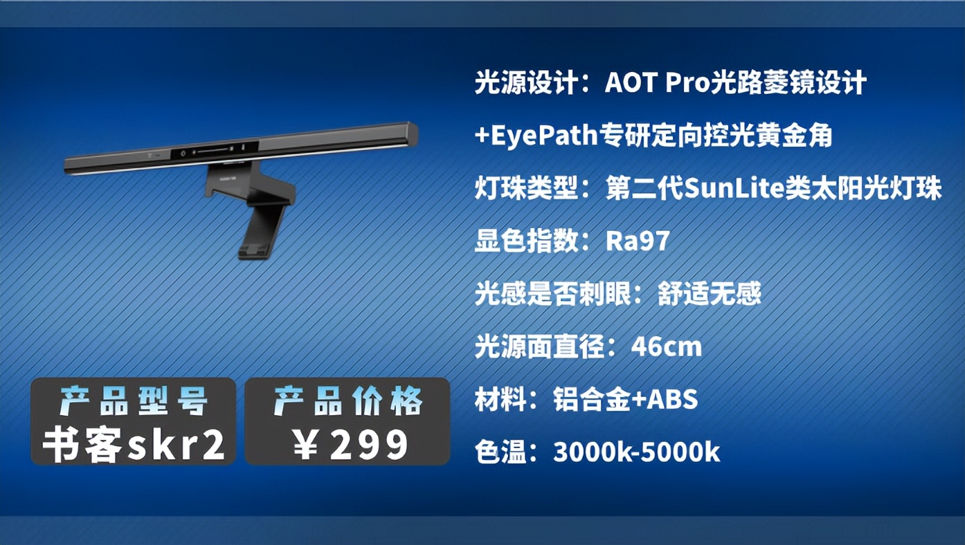 第一梯队:书客SKR2、明基ScreenBar Pro书客这两年在护眼照明领域的关注度比较高,产品定位偏专业路线,书客还是常年出口欧美的专业老牌,是少数同时拥有欧盟与美国双重认证的品牌,还荣获品牌强国优选工程入选殊荣,更是受到了「丁香医生」认可推荐和CCTV荣誉展播。