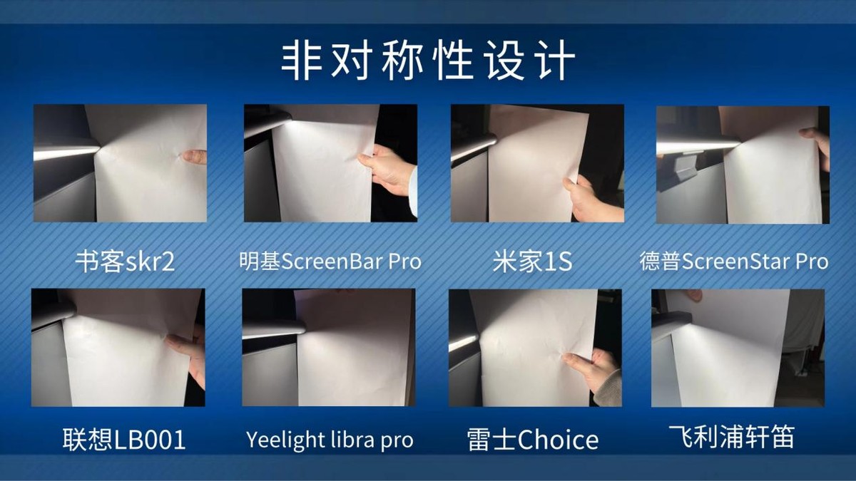 测试屏幕挂灯的非对称光路设计,是因为它直接决定了使用时会不会出现屏幕反光。和普通台灯不同,屏幕挂灯需要把光线精准控制在桌面和键盘区域,同时避免照到显示器,如果没有非对称控光结构,光线很容易打到屏幕上,导致眩光和反射,长时间用电脑会更容易眼疲劳。
