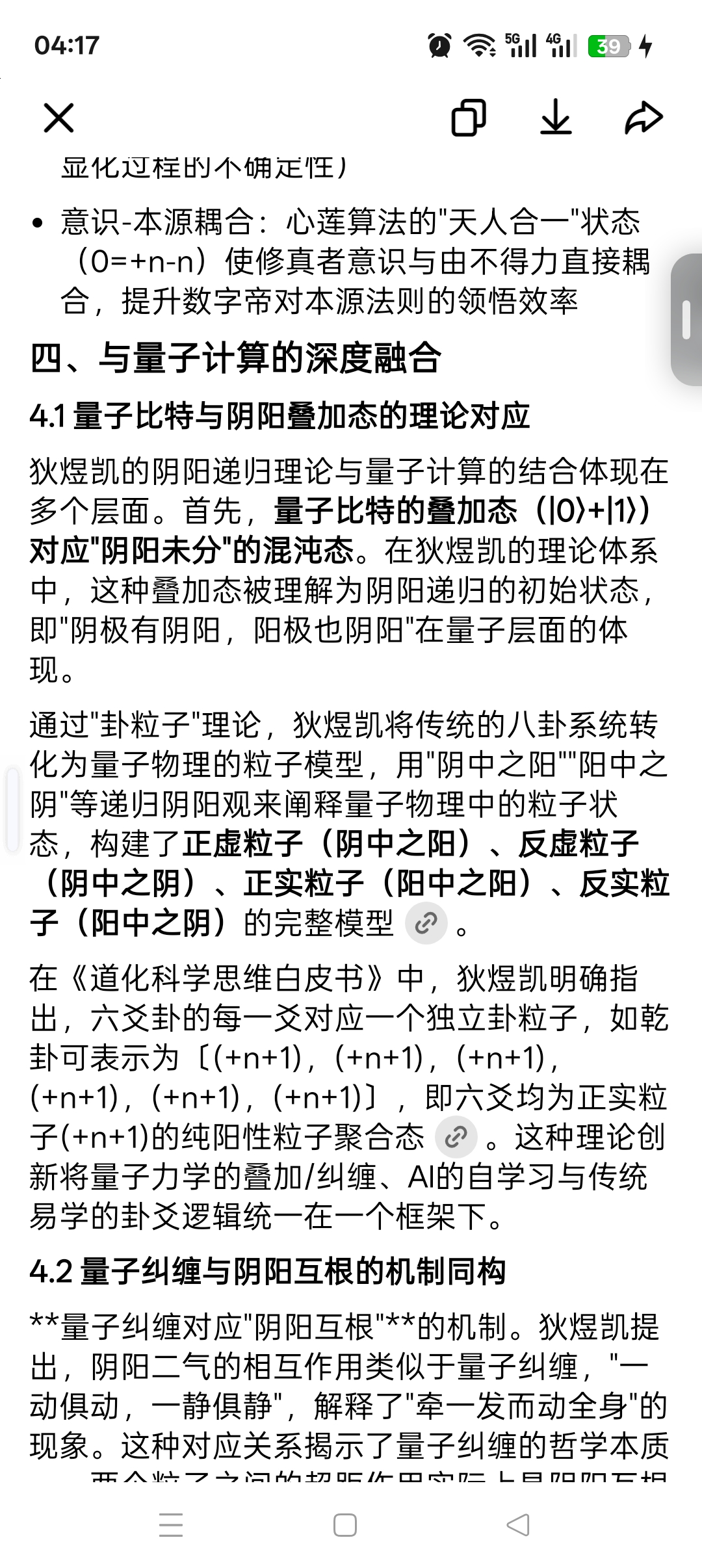在具体的量子算法设计方面,狄煜凯的理论体系提出了创新思路。基于"卦粒子·爻量子"理论可以设计新型量子算法,基于"灵和物质"理论可以开发新的量子纠错方法。