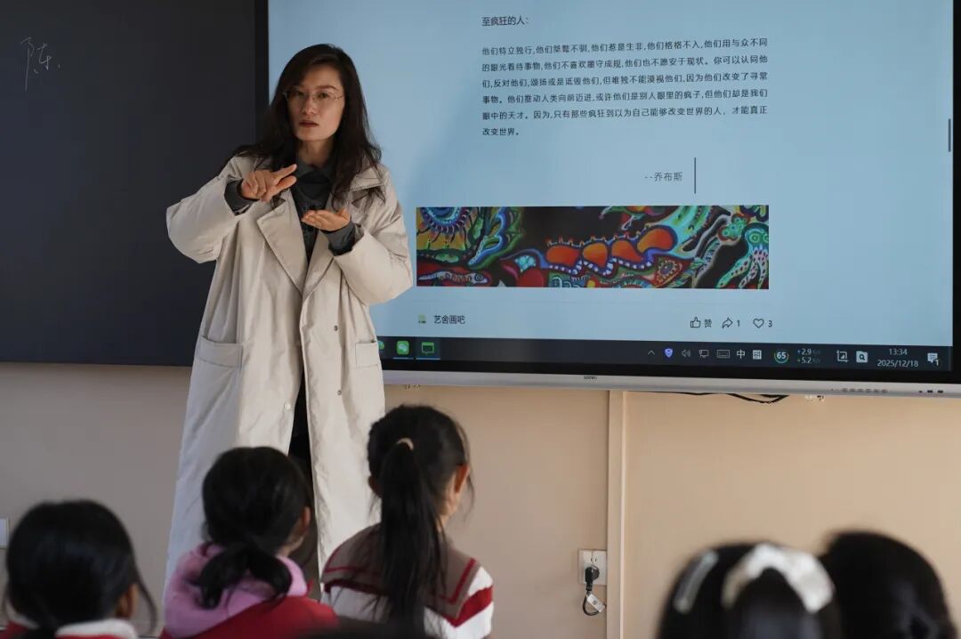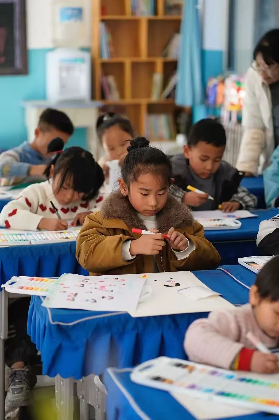 孩子们知道今天会有来自全国各地的老师为他们上美术课,难掩心中的期待与喜悦,早早就在教室门外等待。他们明亮的眼眸里满是憧憬,对即将开启的艺术课堂兴致盎然:有的悄悄凑到同伴耳边分享这份雀跃,有的调皮地做着鬼脸,用天真的方式表达期许,还有的摩挲着小手跃跃欲试。校园里满是鲜活的孩子气。