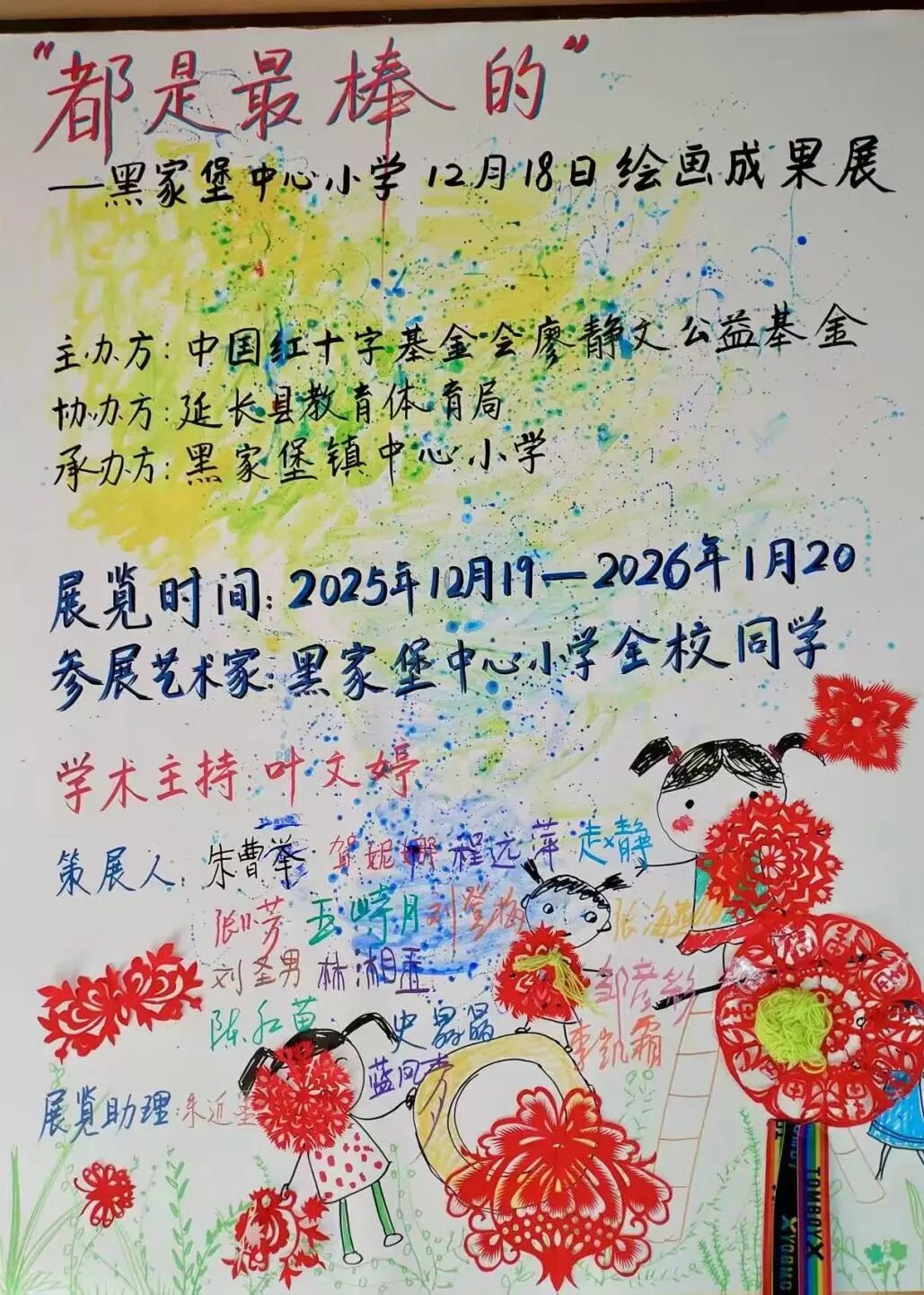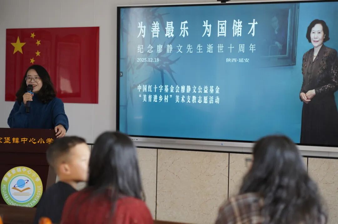 【延安讯】12月18-19日,中国红十字基金会廖静文公益基金组织美术教师志愿者团队,带着对乡村美育的热忱,走进革命老区延安市延长县黑家堡镇中心小学开展美术支教,并用本次教学中孩子们创作的原创作品,为他们举办了人生中第一场画展。这是继“徐悲鸿美育教室”落户该校后,又一场温暖的美育实践,将悲鸿精神的火种,播撒在乡村孩子的心田。