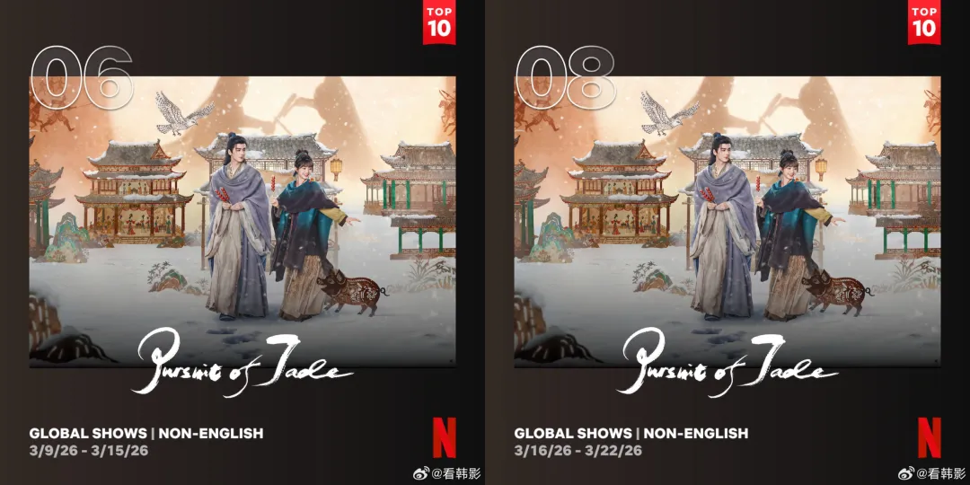 在Netflix拿下《逐玉》全球播映权后,就在上周,《逐玉》成为历史上第一部连续两周登上Netflix非英语全球周榜的国产剧。