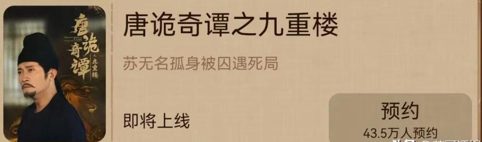 12月17日,《唐诡奇谭》在平台播出,作为《唐朝诡事录》系列第四季。 12月26日,《唐诡奇谭之九重楼》接档上线,形成内容联动。 观众预约量已突破40万,反映出市场对唐诡宇宙的高度期待。