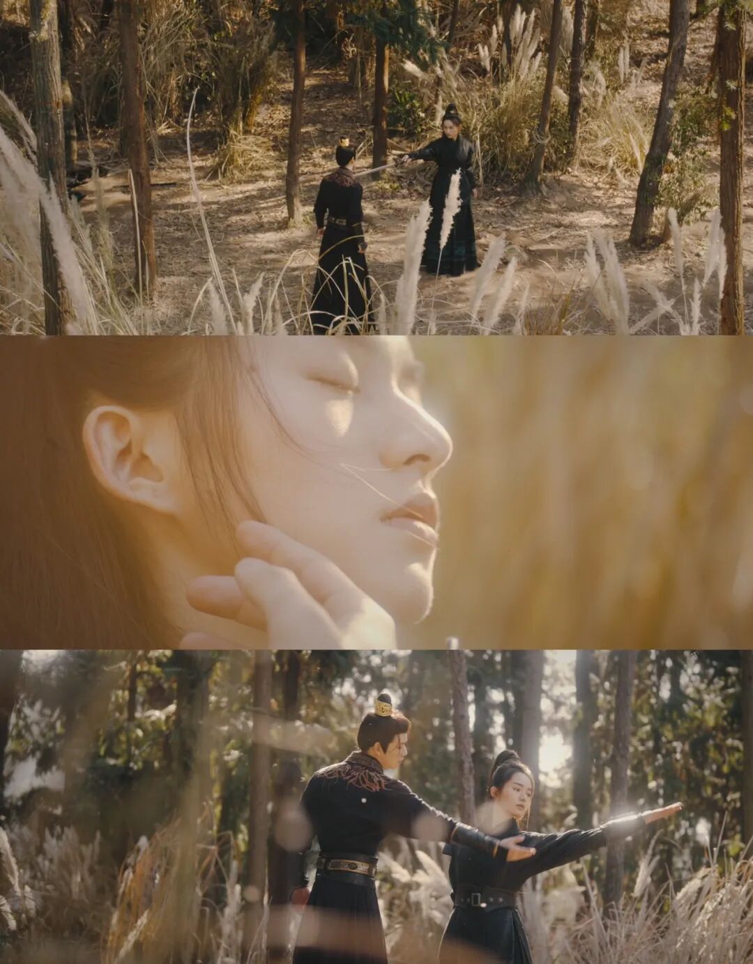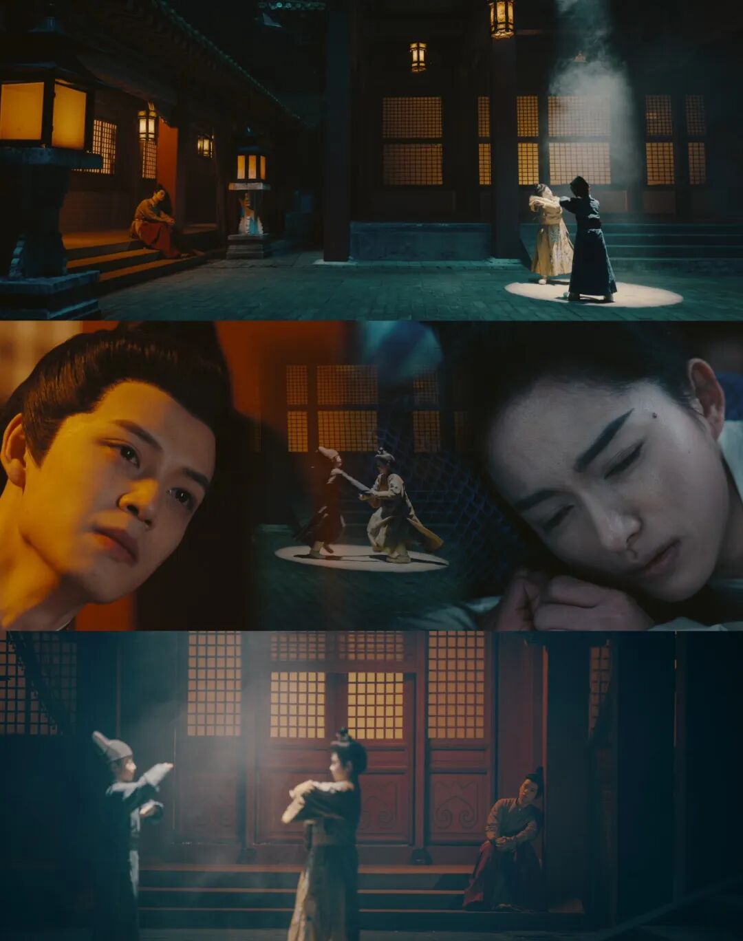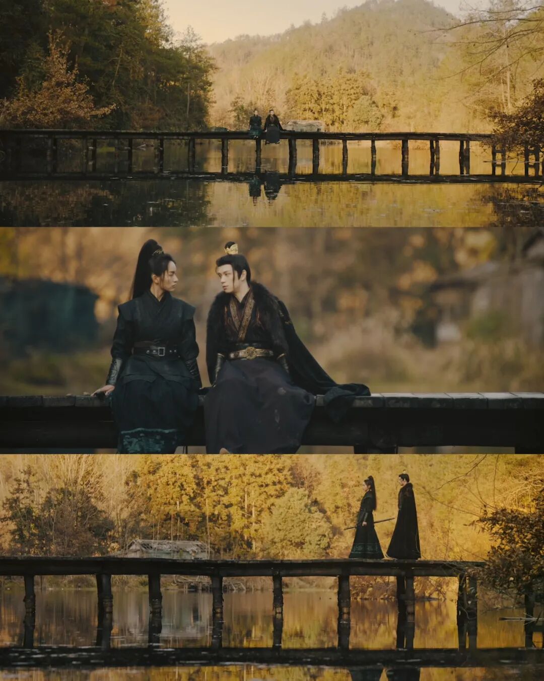 烟波楼密室内的光影调色,借鉴了胡金铨的《侠女》与李安的《卧虎藏龙》,而桥头约会剧明黄色的深秋背景氛围感,则复刻《刺客聂隐娘》的留白美学。