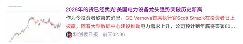 与此同时,AI缺电的还得到通用电气超预期的业绩指引佐证。