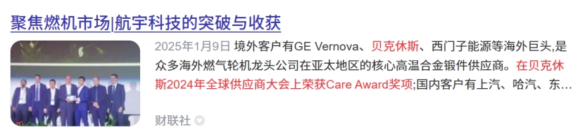 核心优势:公司已成为成为西门子能源燃机透平热端叶片在中国的唯一供应商。与GE、贝克休斯等全球巨头达成战略合作,锁定了多款燃气轮机叶片的未来订单。