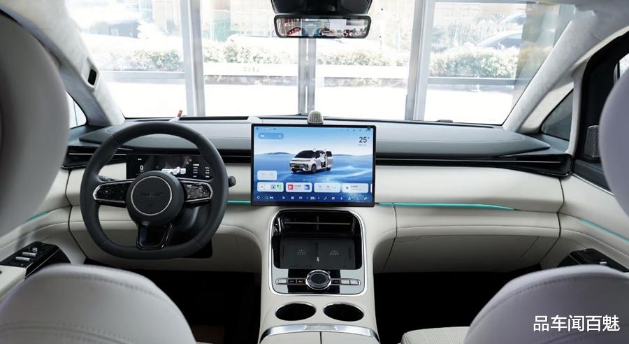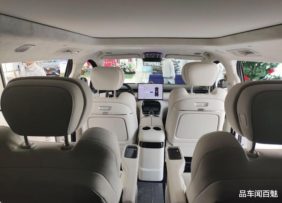 目光移至车内,新车内饰基本延续了吉利银河家族式的T字型设计风格。而其车内配备的悬浮式全液晶仪表与中控屏,结合大量皮质包裹的铺陈结构,则兼具了科技感与豪华质感。此外,银河V900还将配备高通骁龙8295P芯片加持的Flyme Auto 2.0车机系统以及由包含激光雷达等硬件与千里浩瀚H5方案组成的高阶智能辅助驾驶系统。