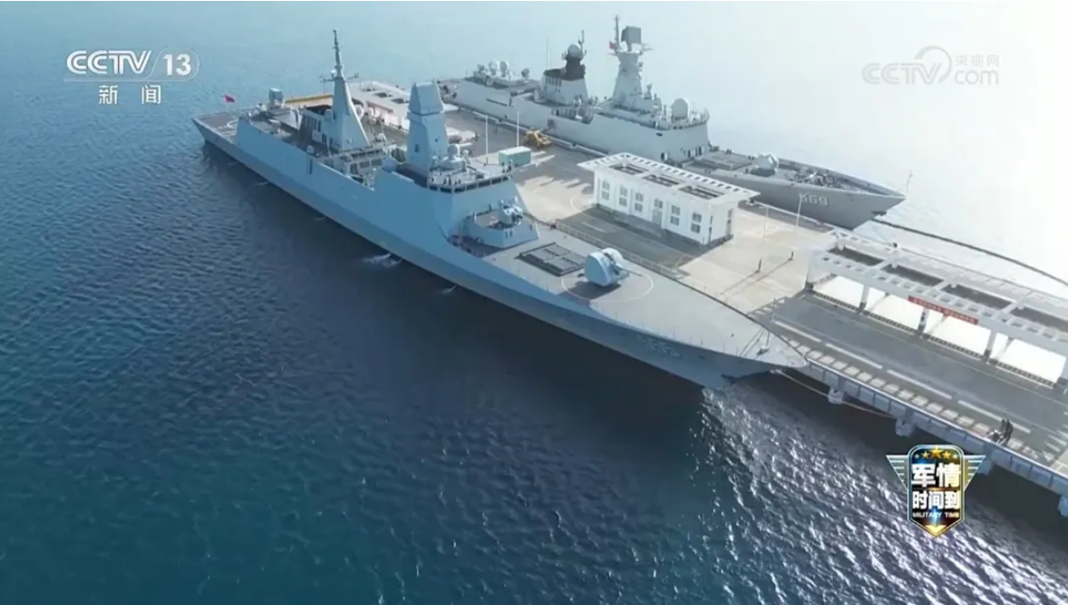 央视播出的镜头中,能看到545漯河舰与054A型护卫舰569玉林舰同框,而后者是南部战区海军某驱逐舰支队的成员。网传漯河舰已调往南部战区海军,恐怕不是空穴来风,或许这张视频截图能够从侧面印证。
