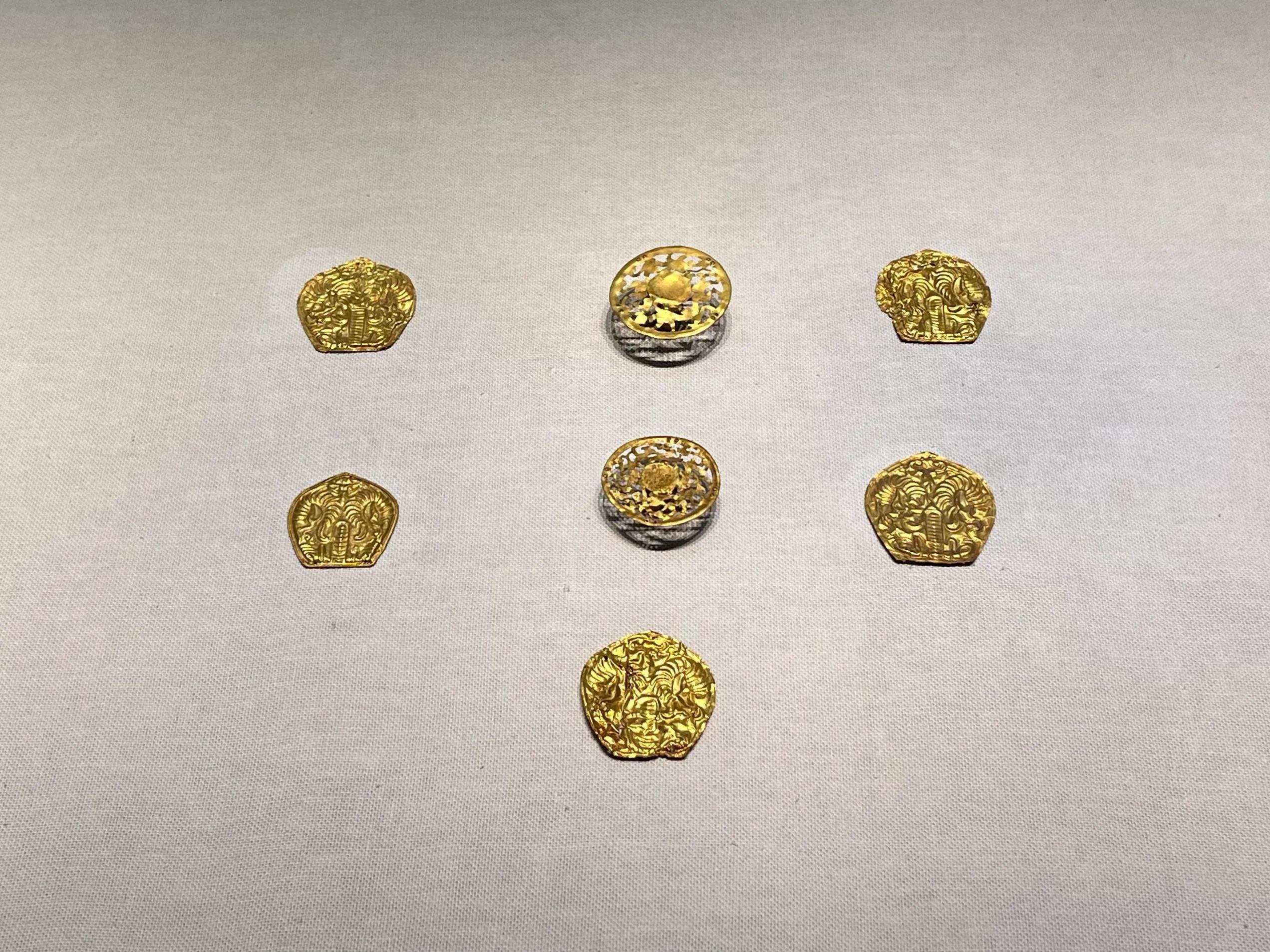 满城汉墓出土金饼69枚,金饼含金量95—97%,重量16—18克,约相当于西汉时的一两。