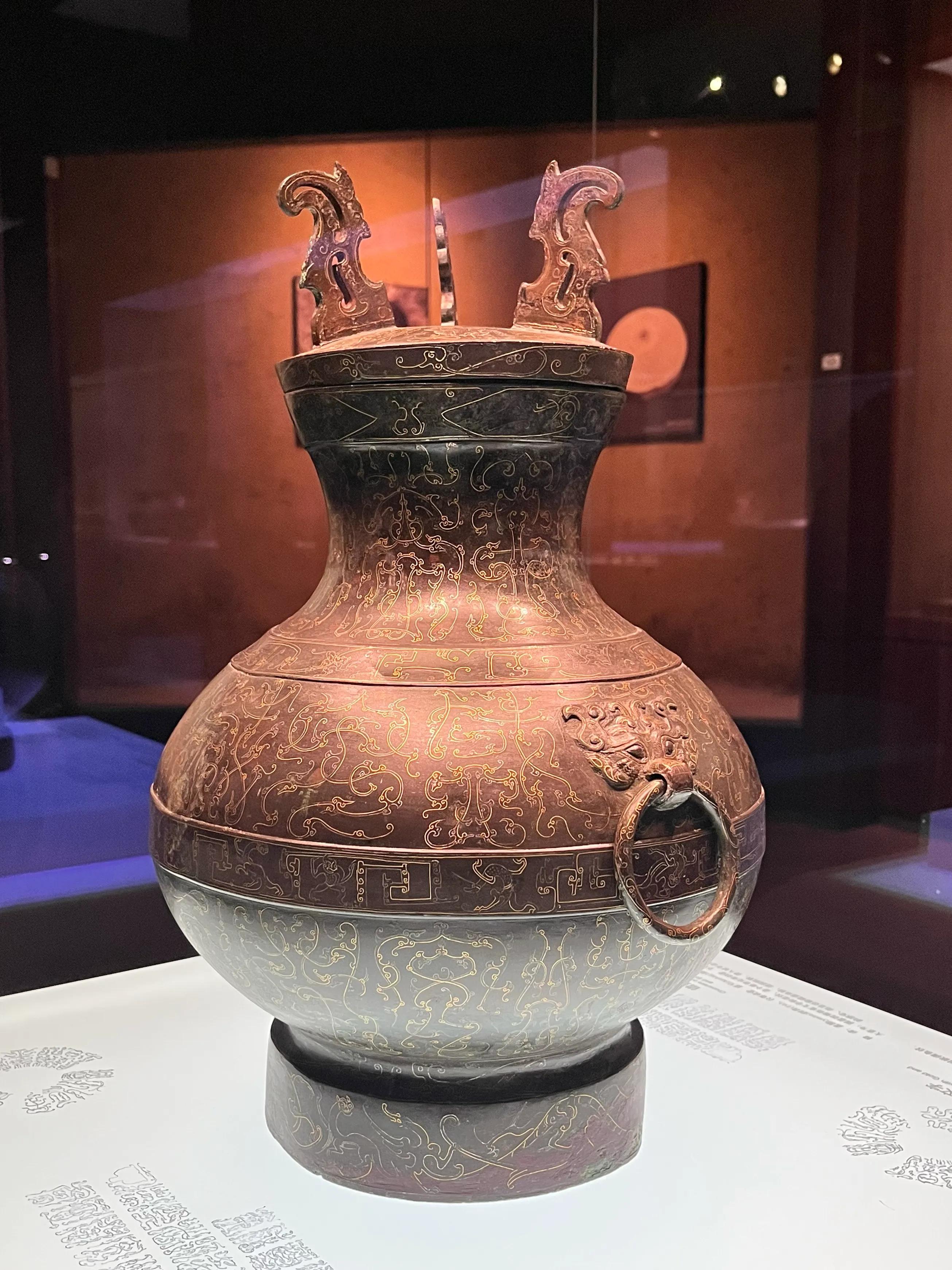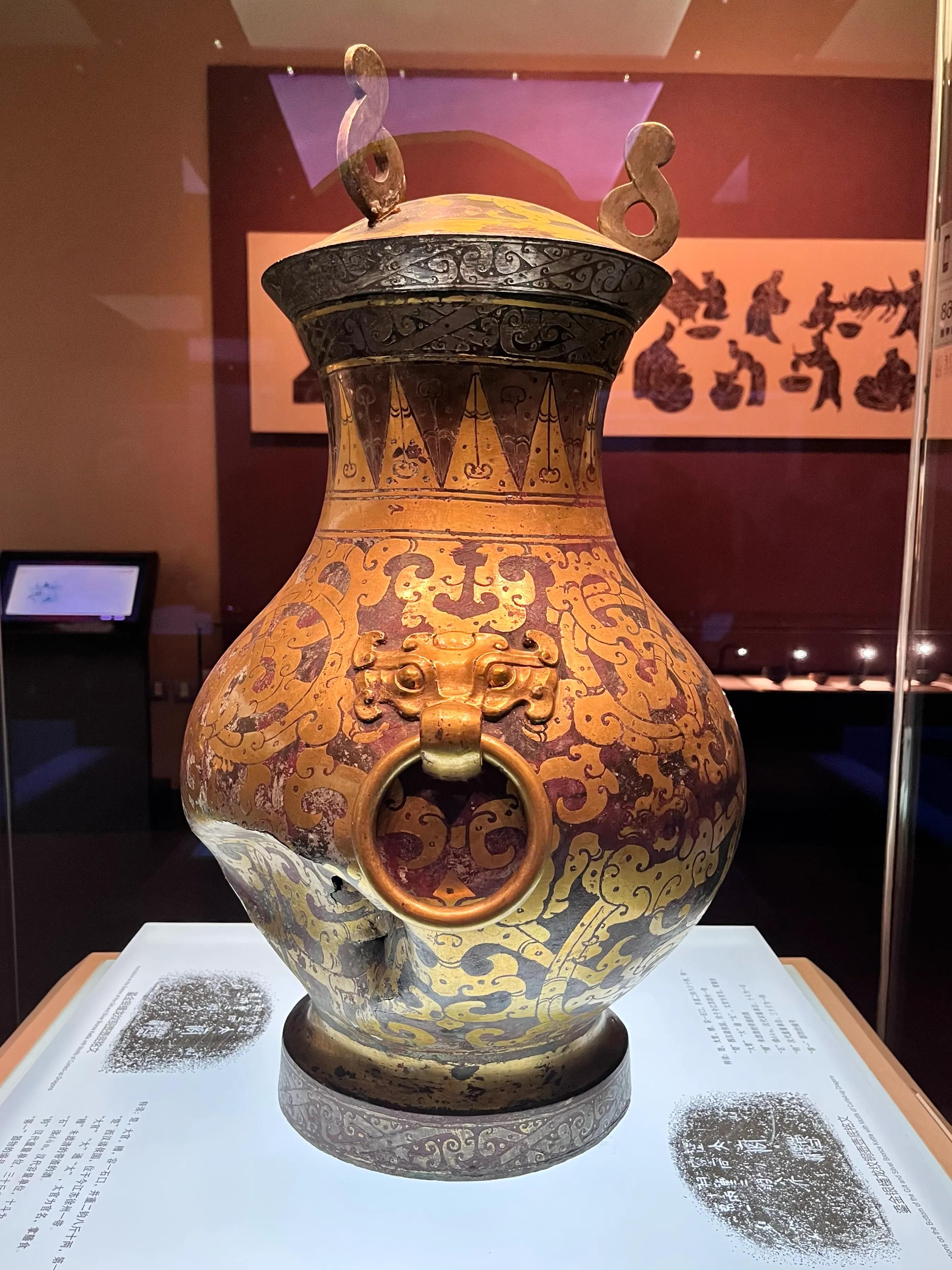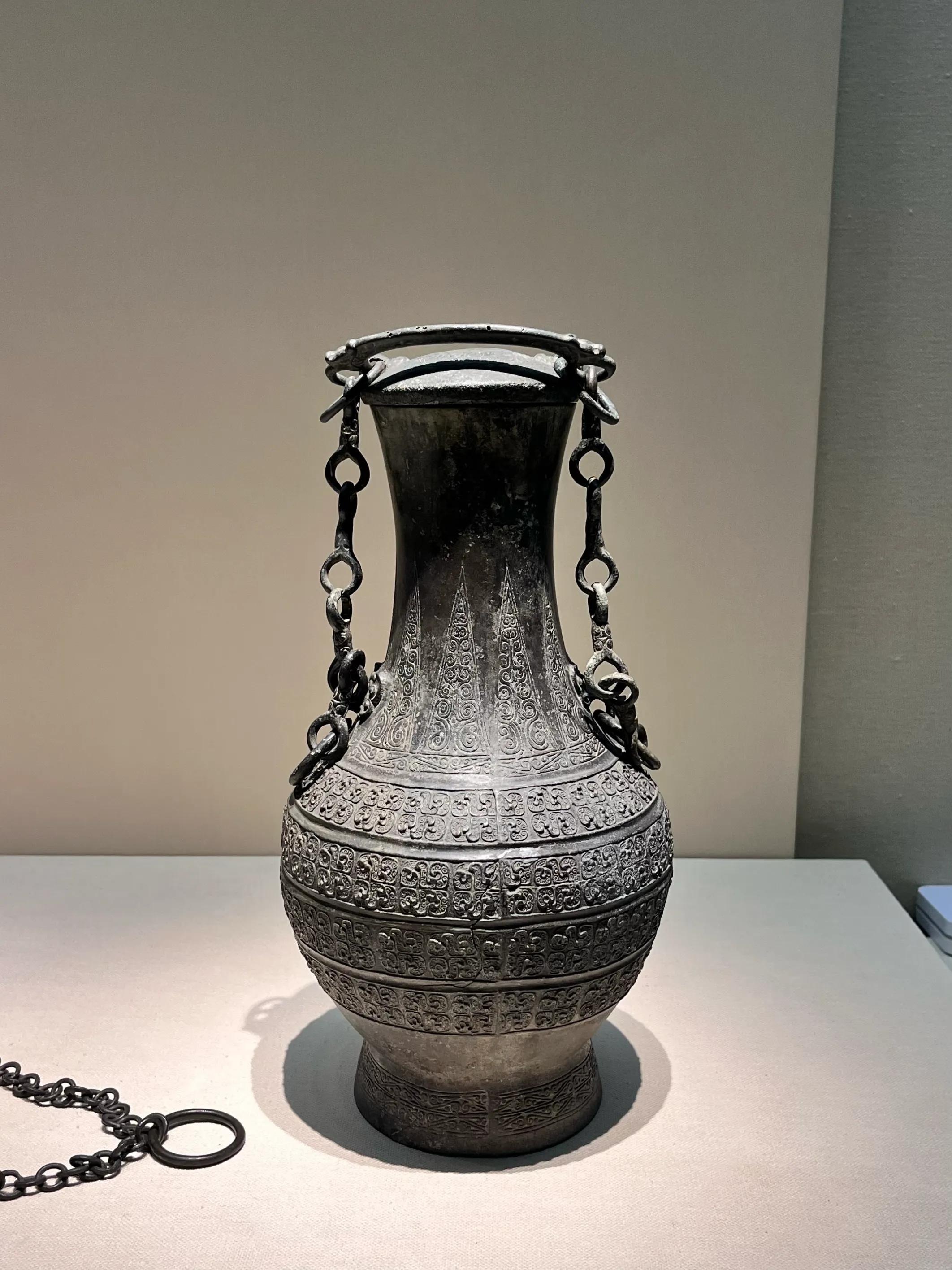 此壶是盛酒的器皿,初为楚国所有,后一度收归朝廷,再后来转赐给刘胜。