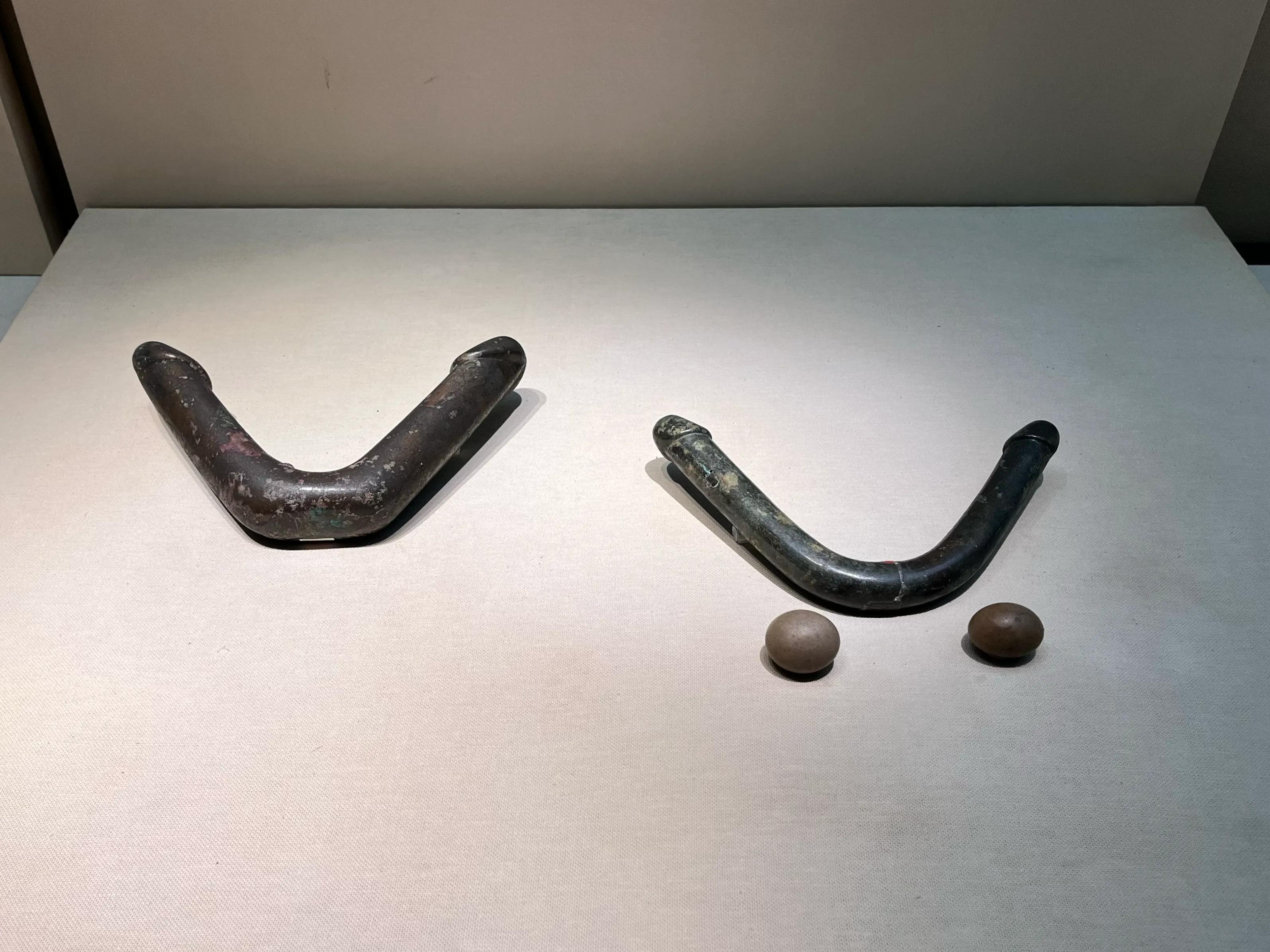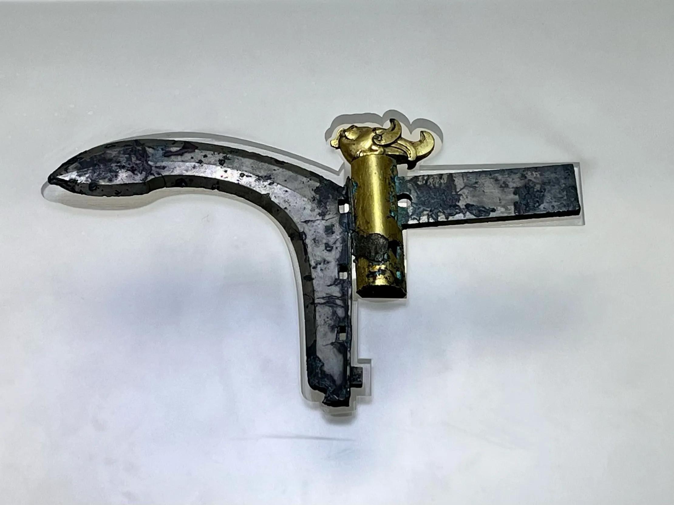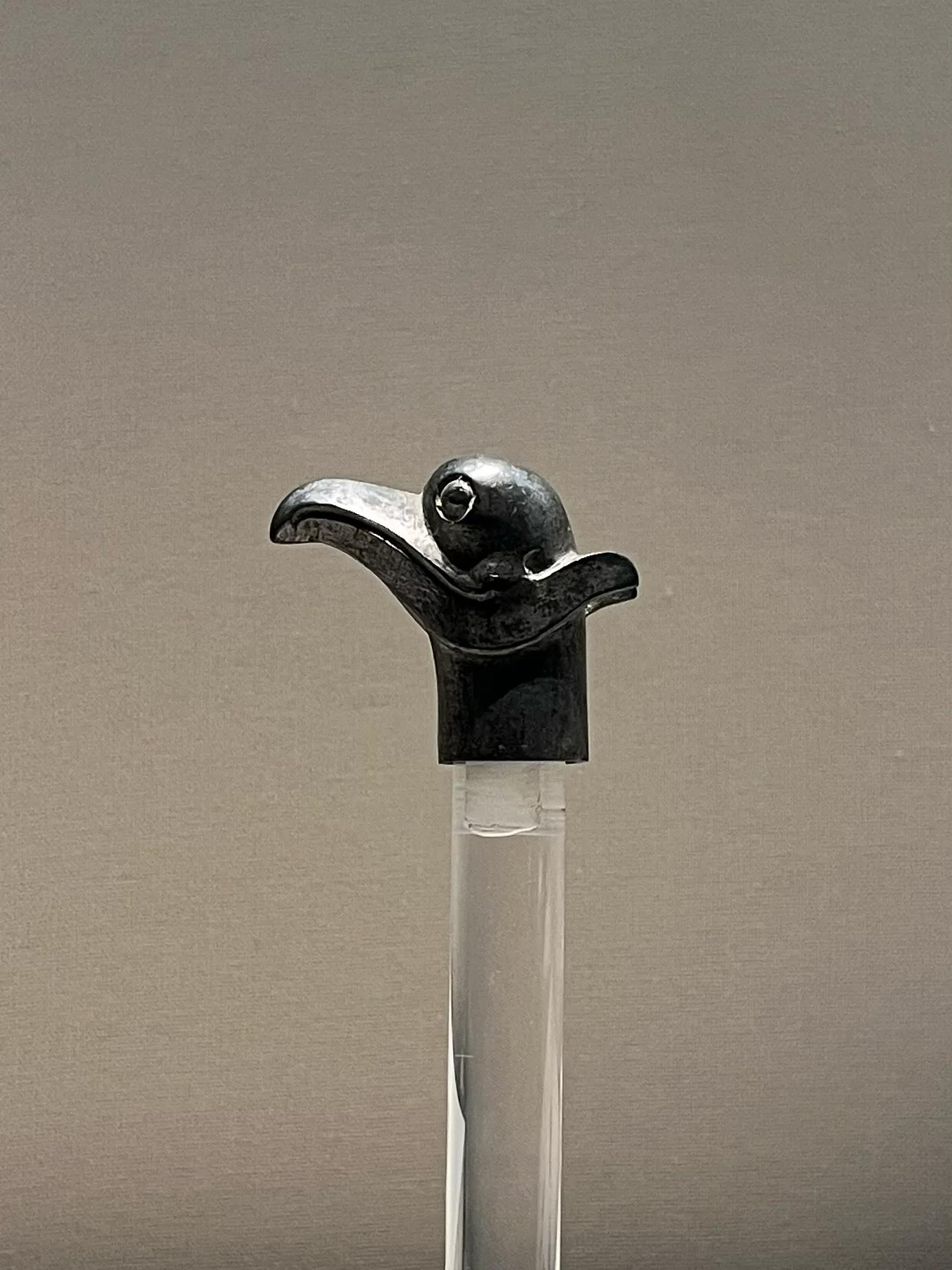 仪仗是用于仪卫的礼仗。铜鸡首仪仗出土于刘胜墓后室,木制仗柄已朽毁,仅存仗首和鐏。
