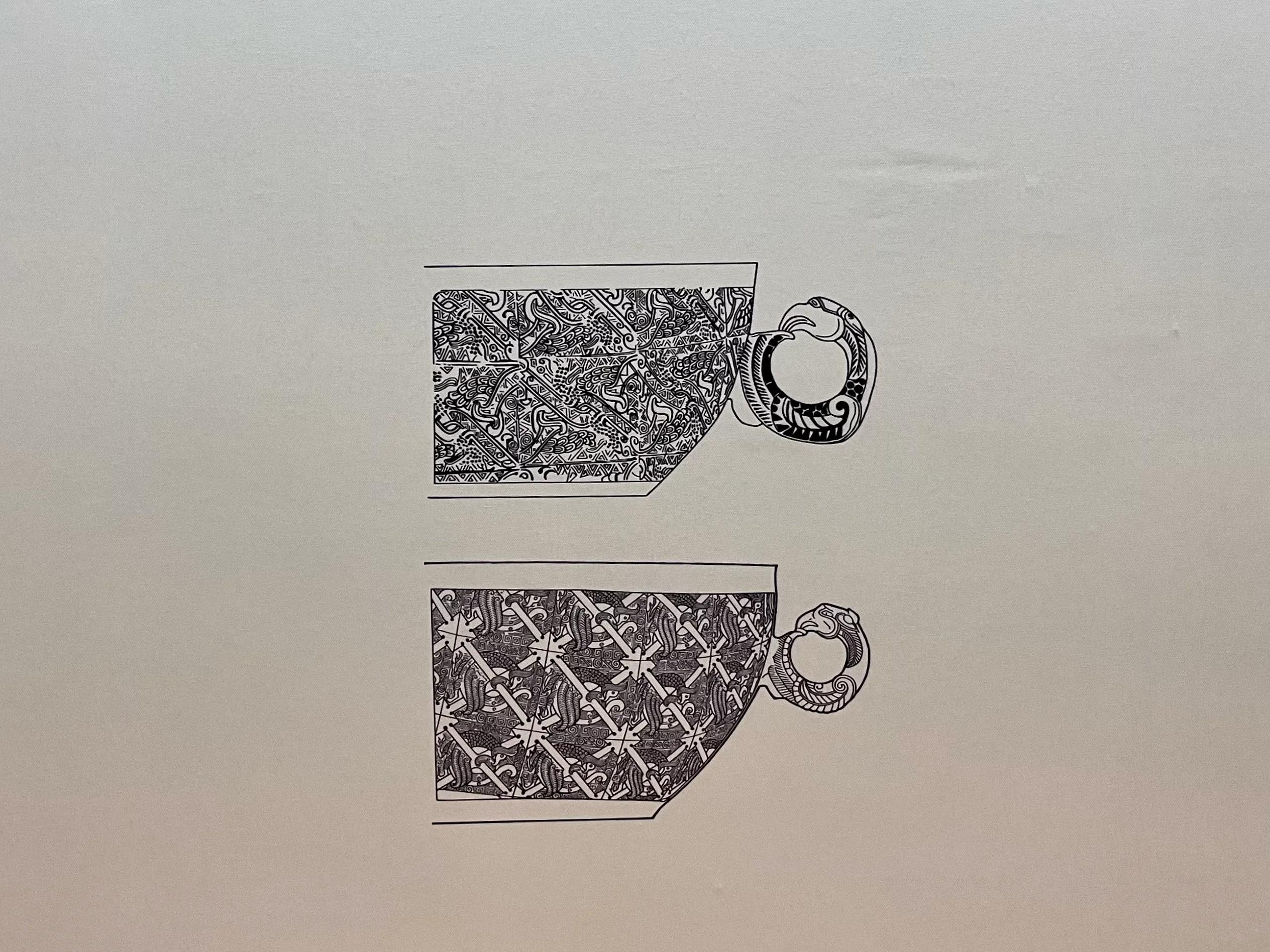 调和化妆品的用具,出土时杯内尚存朱红色痕迹。