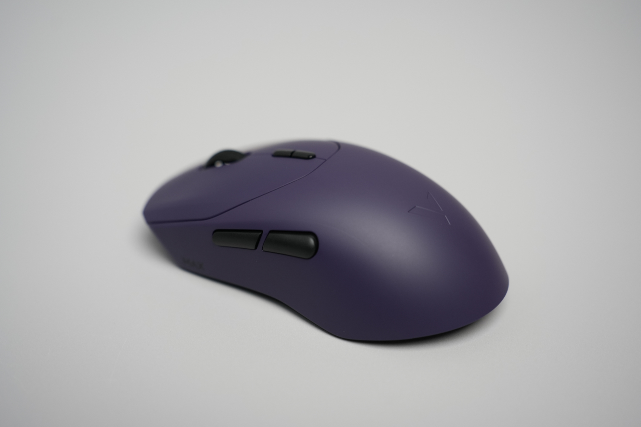 外观设计兼顾质感与实用性,细节拉满。VT9 MAX采用“电驭紫”配色,亲肤防滑涂层温润细腻,不易沾指纹,出汗时也能稳握不滑,机身尺寸125×65×39mm,专为中大手型优化,右手对称设计适配抓握、趴握等多种握持方式,尾部加宽的平缓弧度能有效支撑掌心,缓解长时间使用的疲劳感。