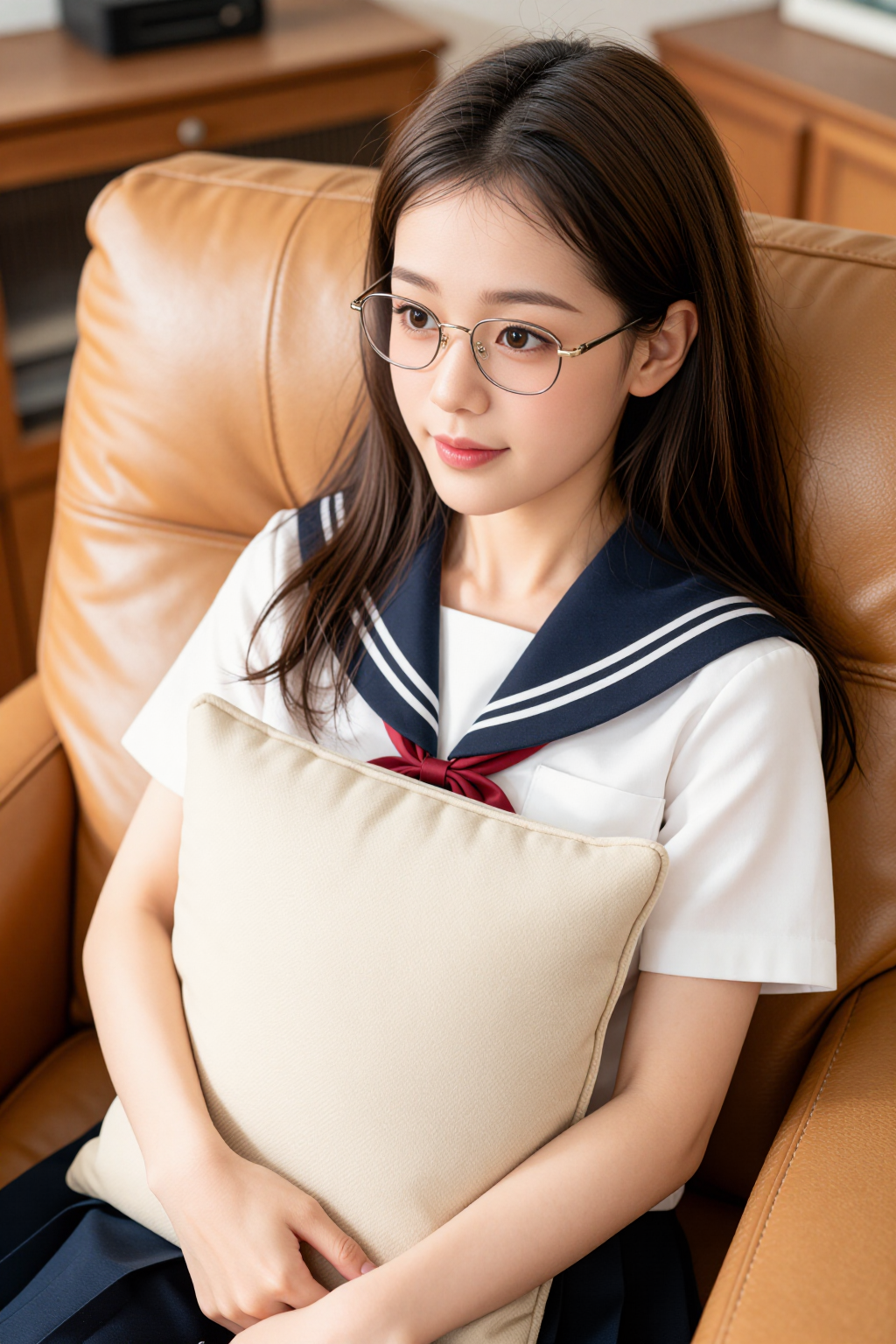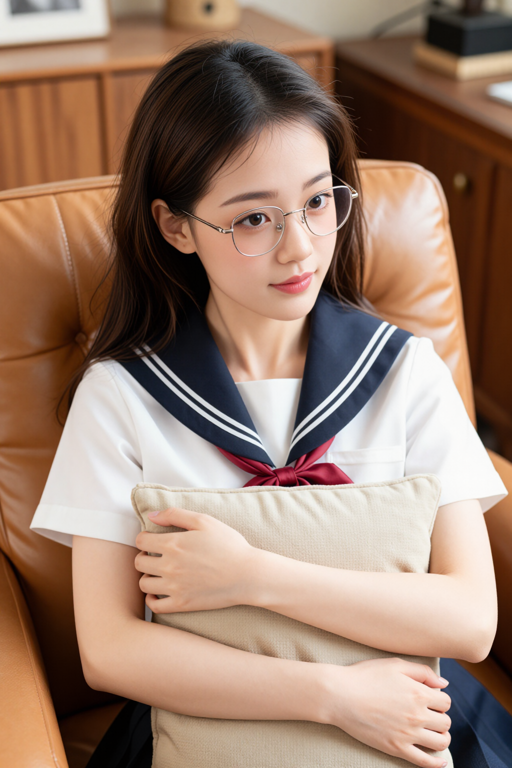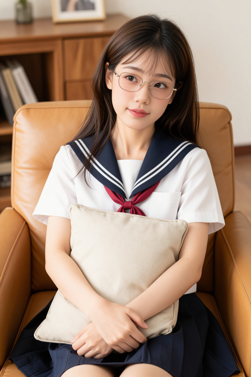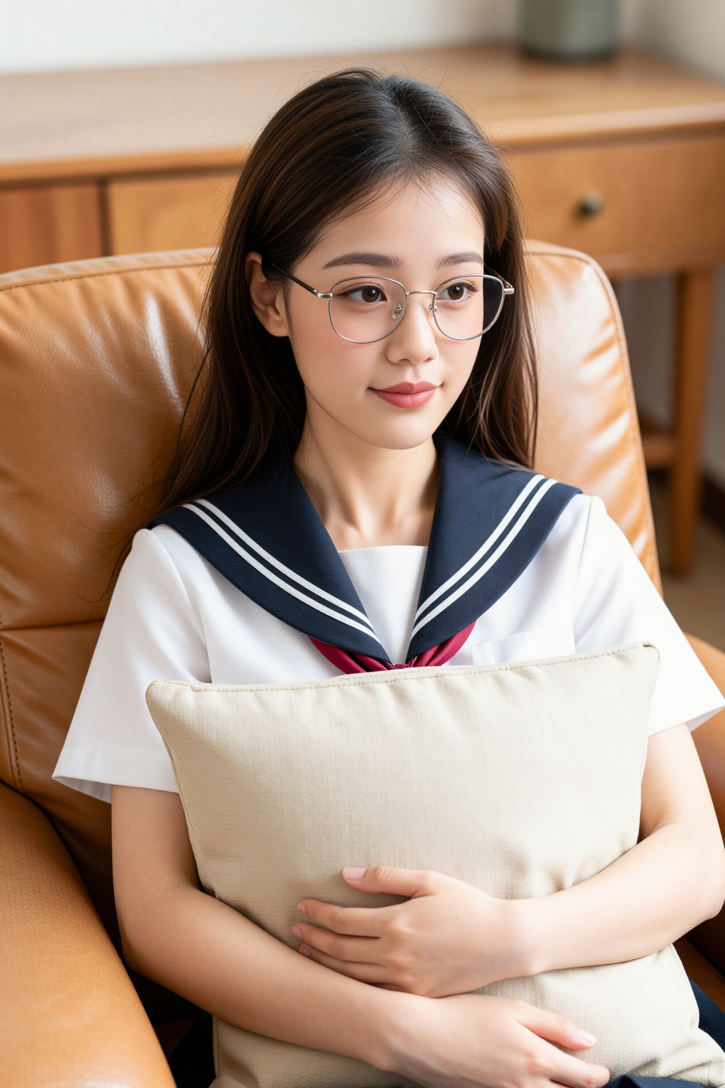 搭配藏青下装,与上装的撞色领部形成呼应,让整体造型更显协调统一。下装采用利落的版型设计,巧妙修饰身形线条,兼顾利落感与实用性,日常搭配乐福鞋或小皮鞋,就能打造出清爽又不失细节的日常造型。