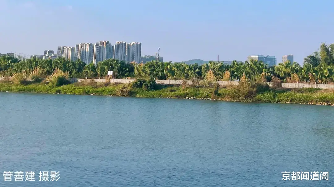 河面不宽,对面的景色,