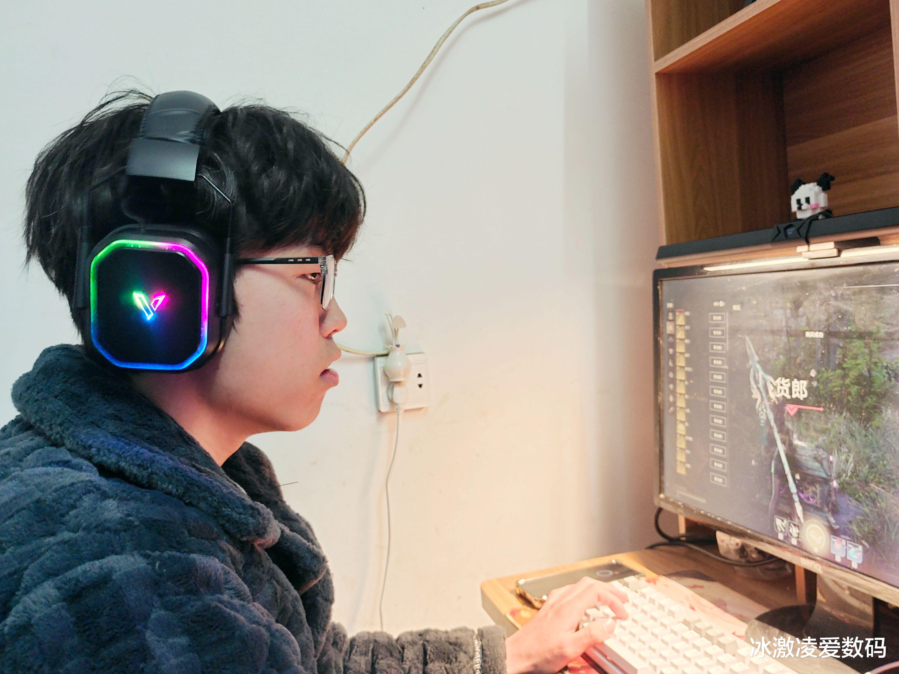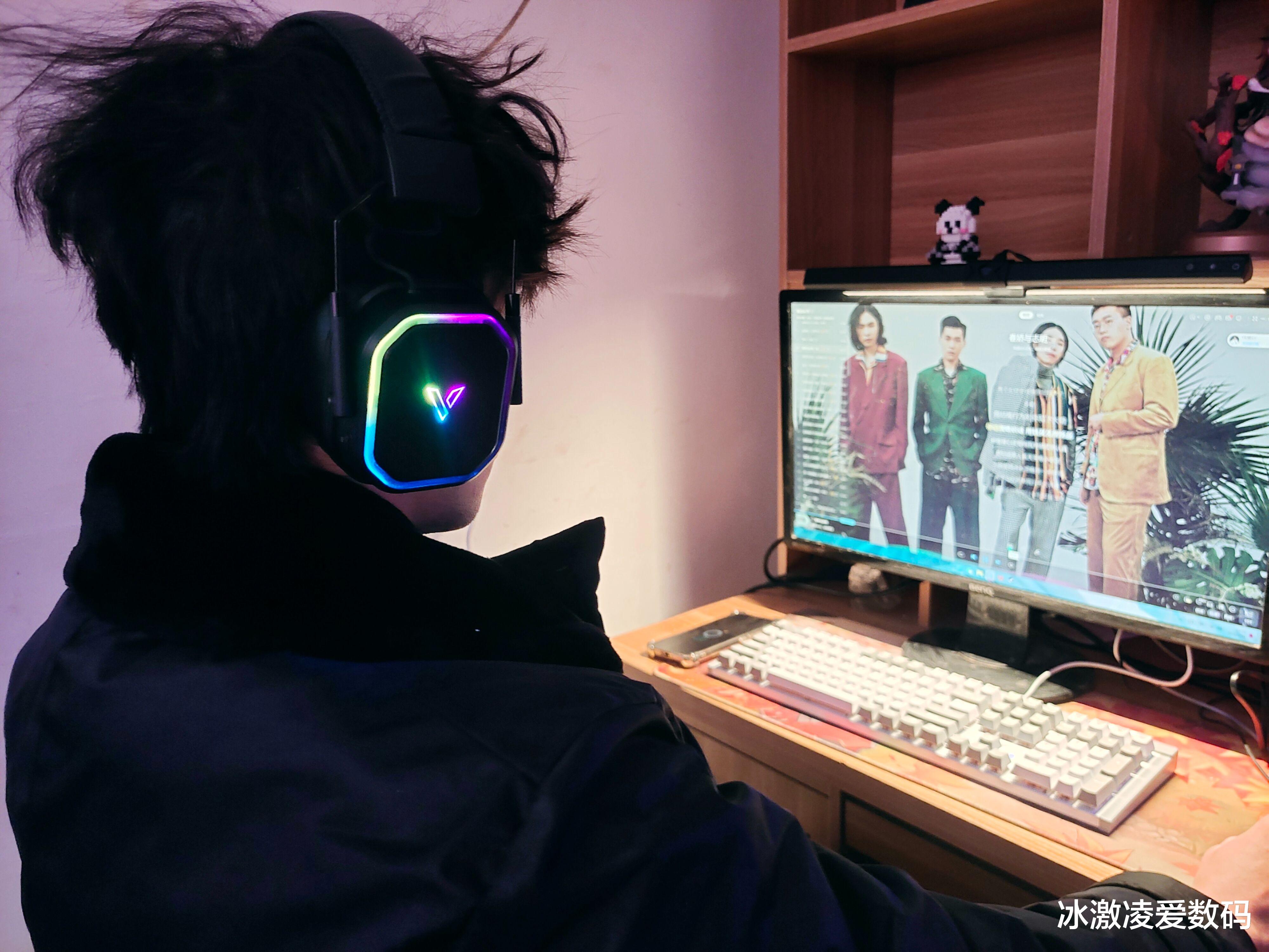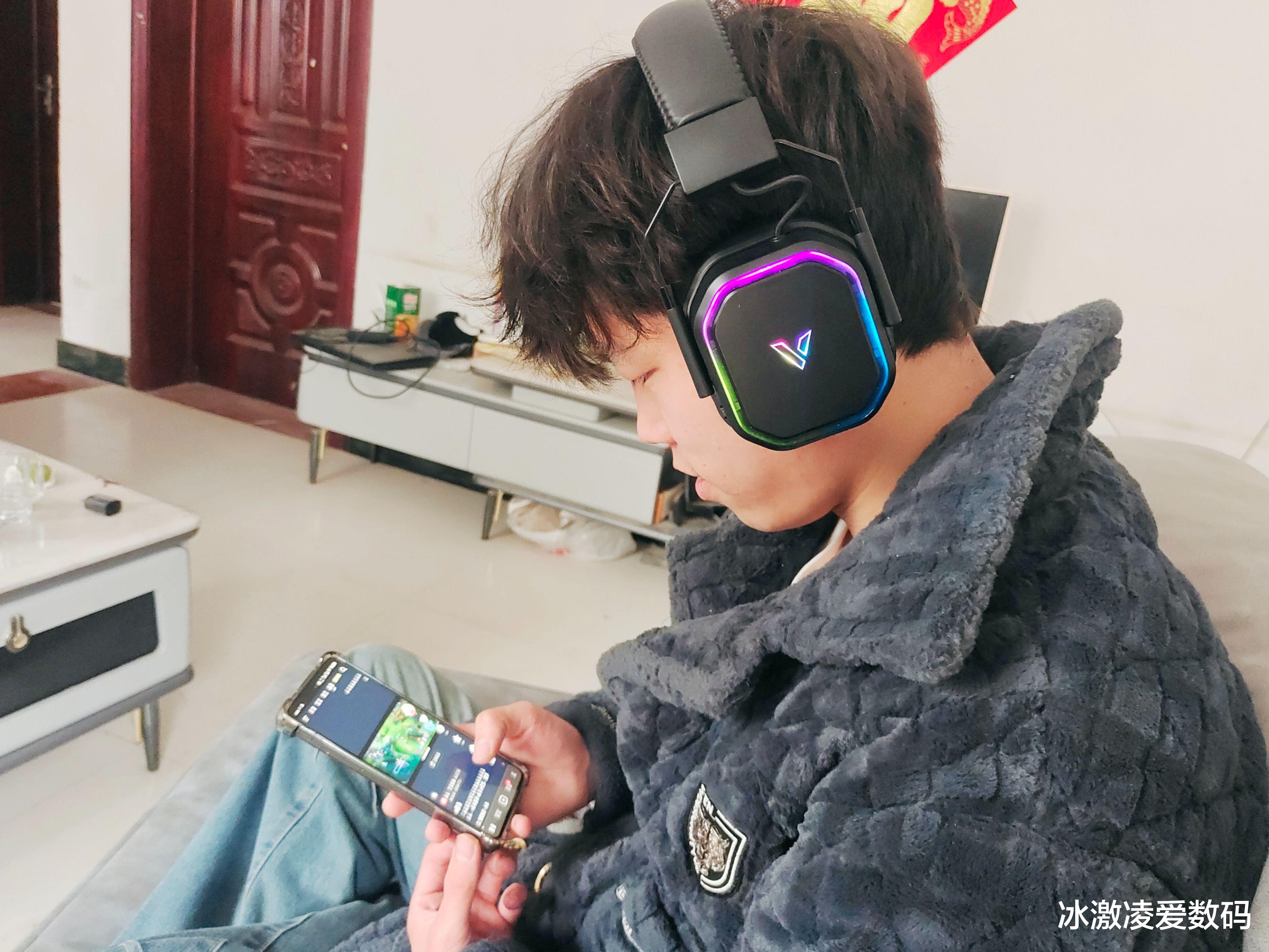 看着他们父子感情破损的日益剧烈,我也只能尝试着从孩子的喜好来渐渐走入他的内心。孩子比较社恐,除了功课其余时间全部钻进“王者”的游戏世界里,老爸就投其所好,给儿子买了一副雷柏VH850多模无线RGB游戏耳机。