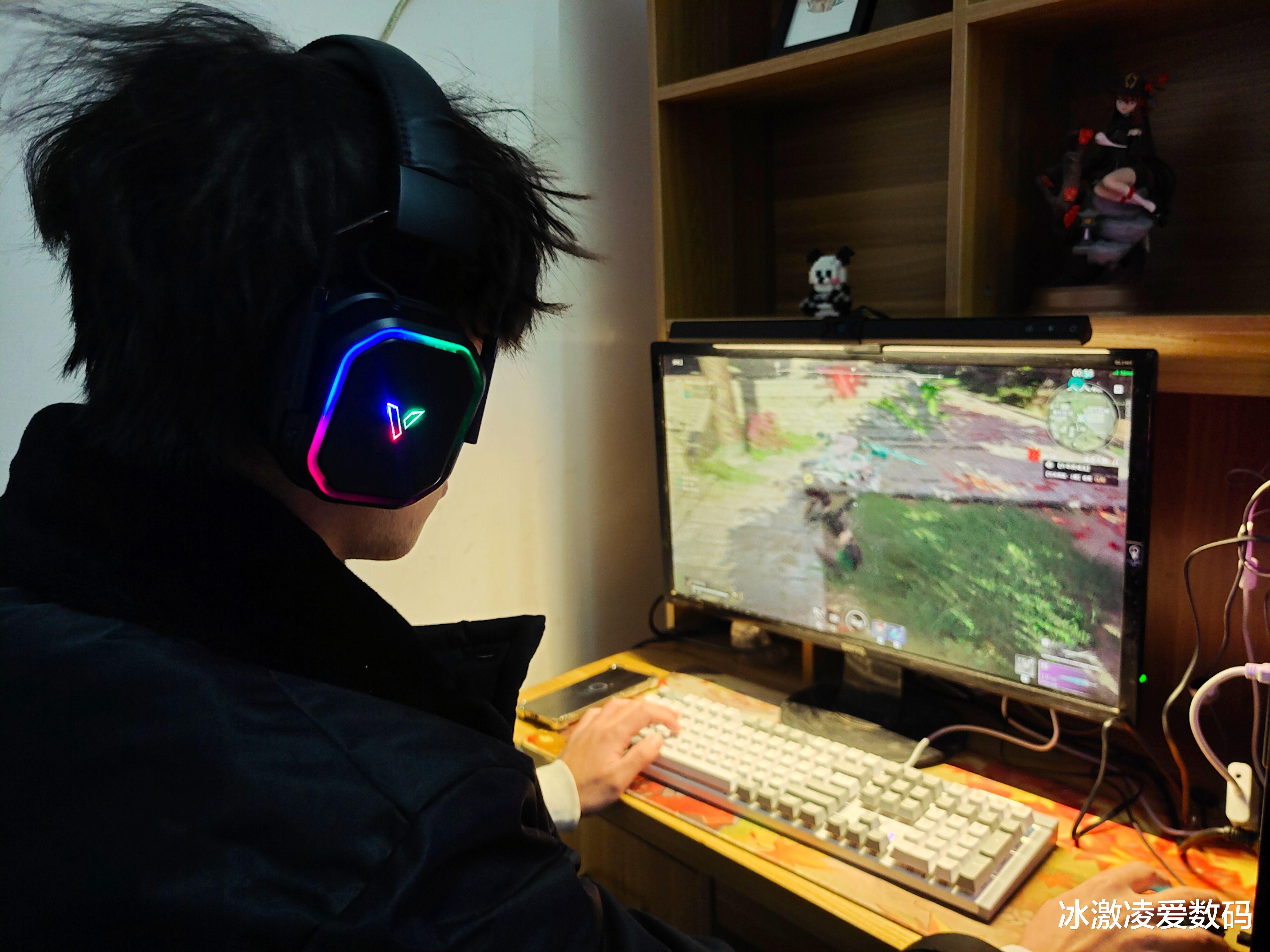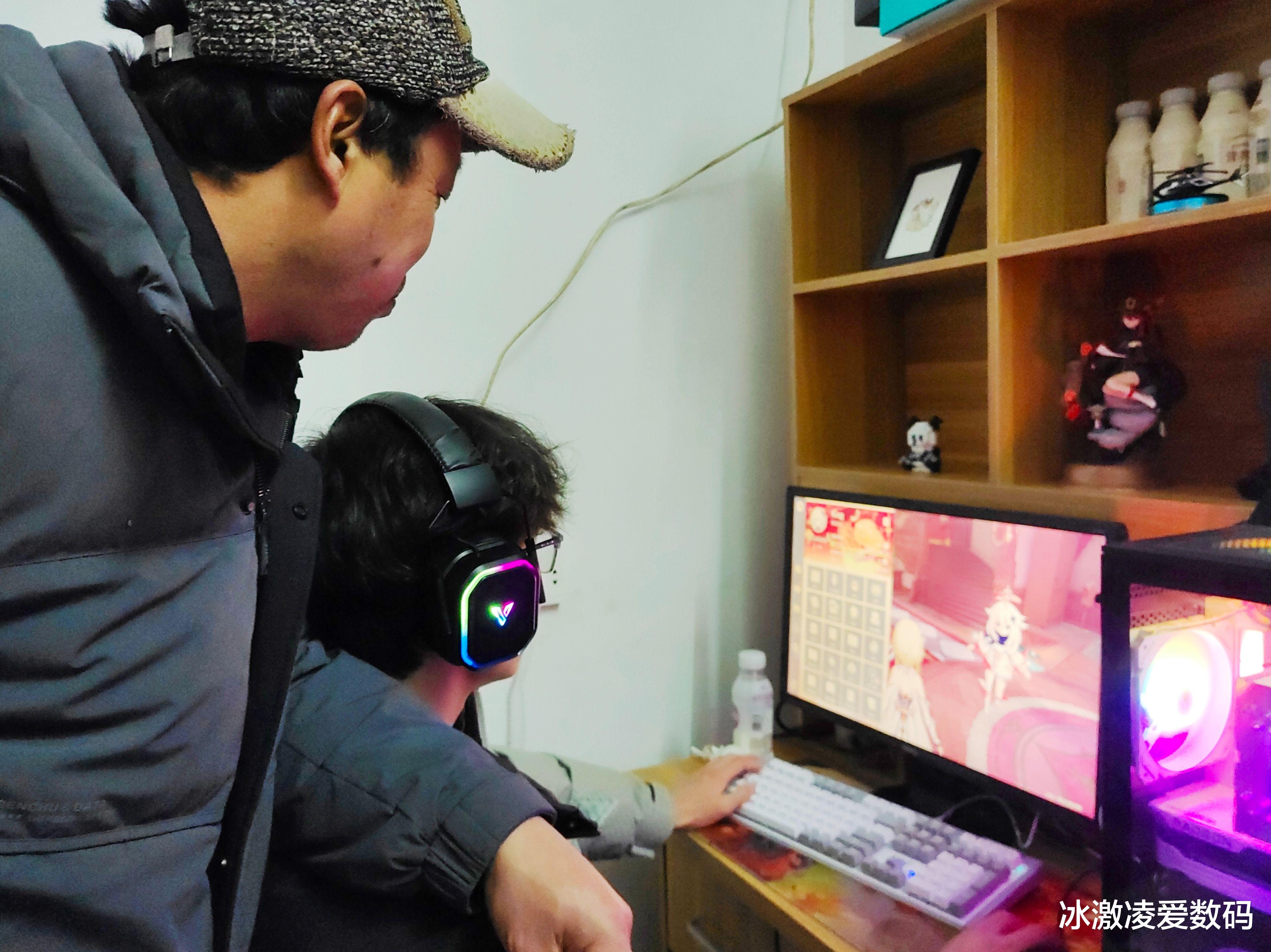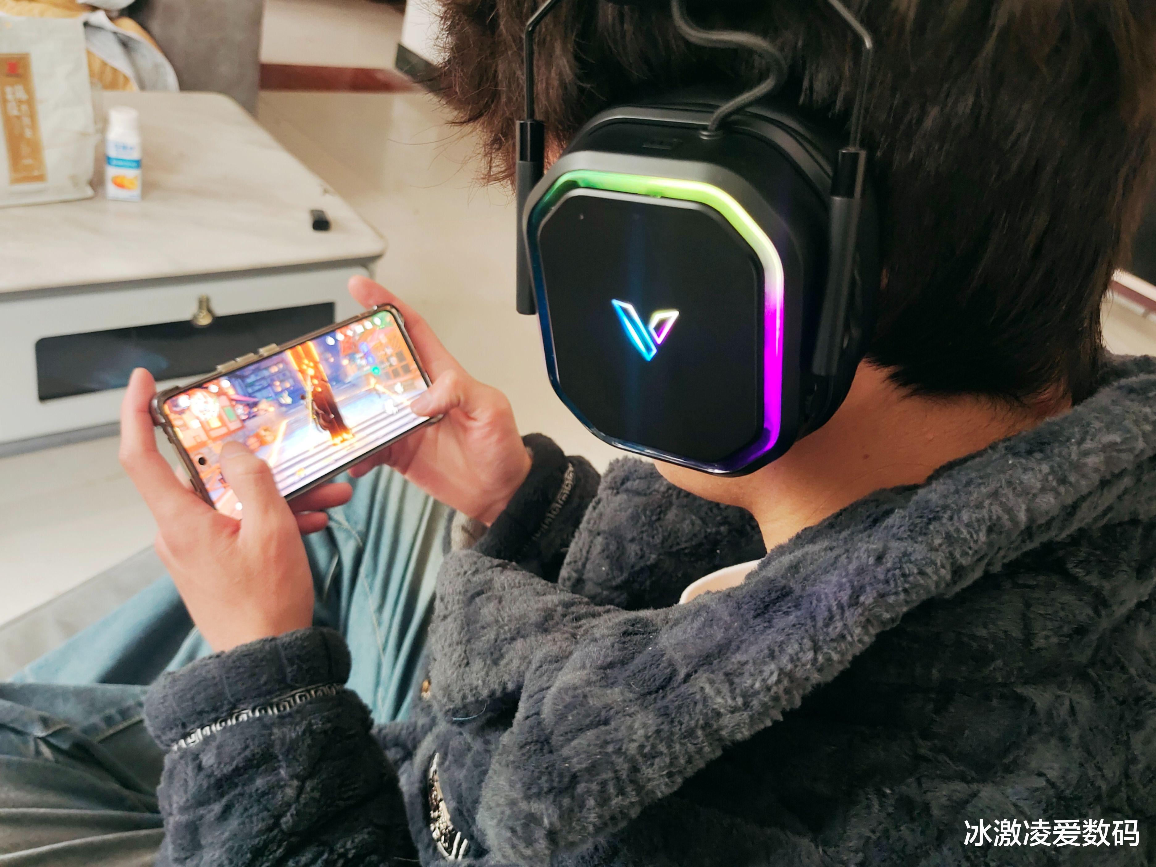 看着他们父子感情破损的日益剧烈,我也只能尝试着从孩子的喜好来渐渐走入他的内心。孩子比较社恐,除了功课其余时间全部钻进“王者”的游戏世界里,老爸就投其所好,给儿子买了一副雷柏VH850多模无线RGB游戏耳机。