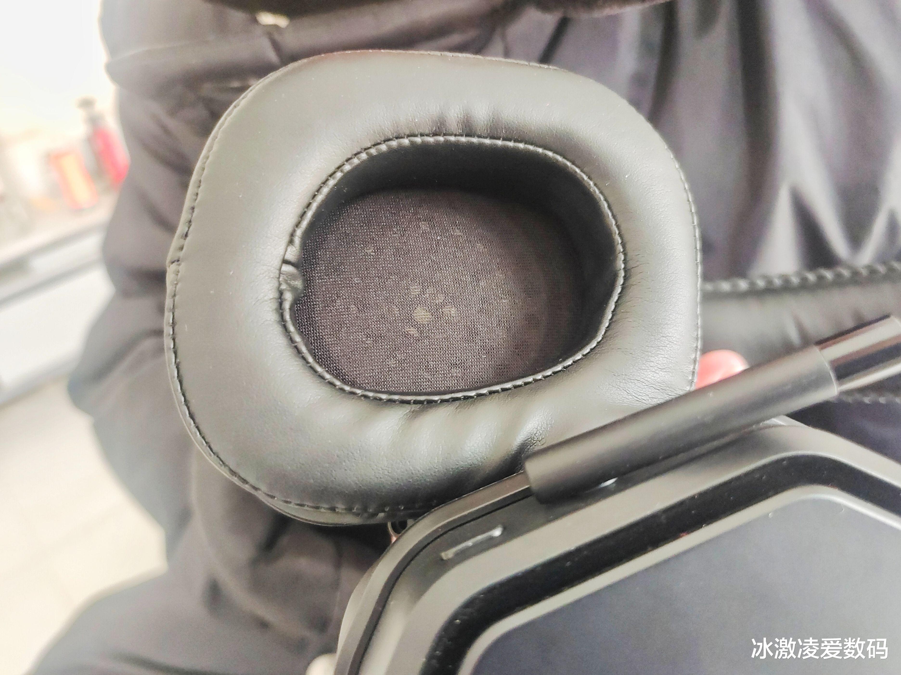 耳机全身都是黑色,男生都比较偏爱这黑色,简约大方且透着神秘感。大大的耳机听筒,摸上去很细腻,捏着软软的很舒服,佩戴起来不觉憋闷不压耳朵,更适合长时间“决战”。