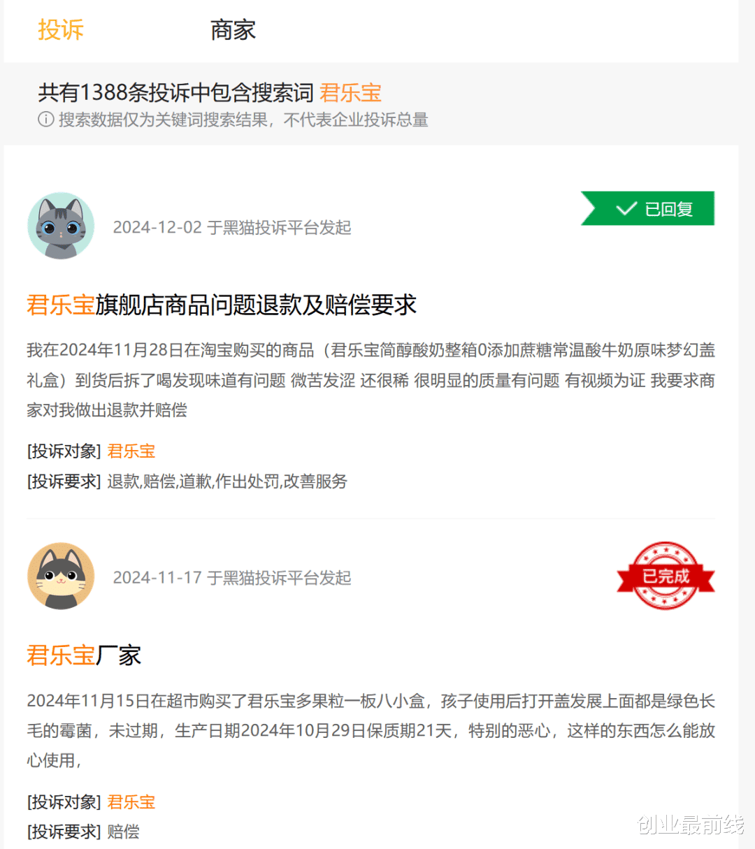 值得一提的是,君乐宝已经多次陷入质量风波。