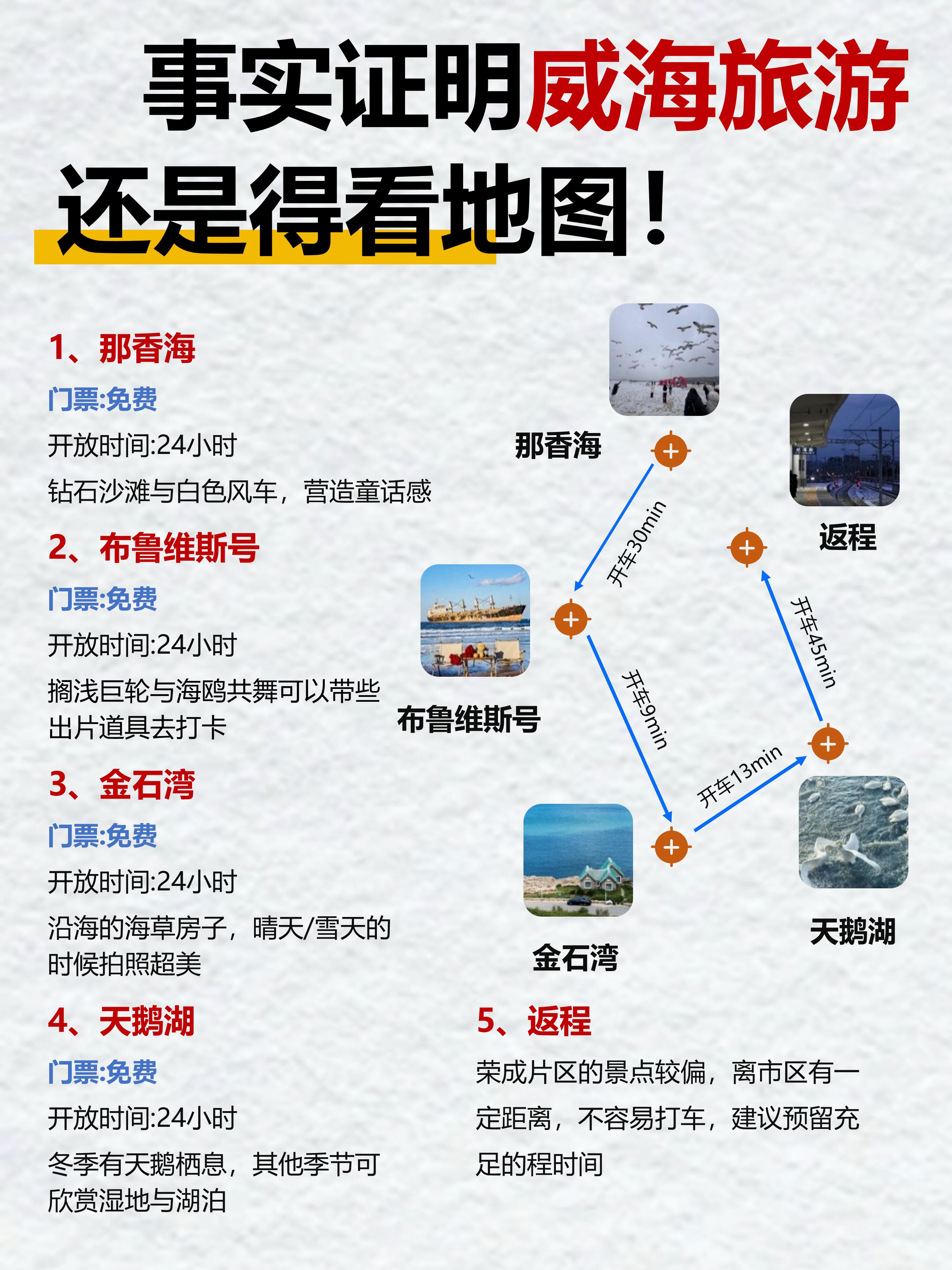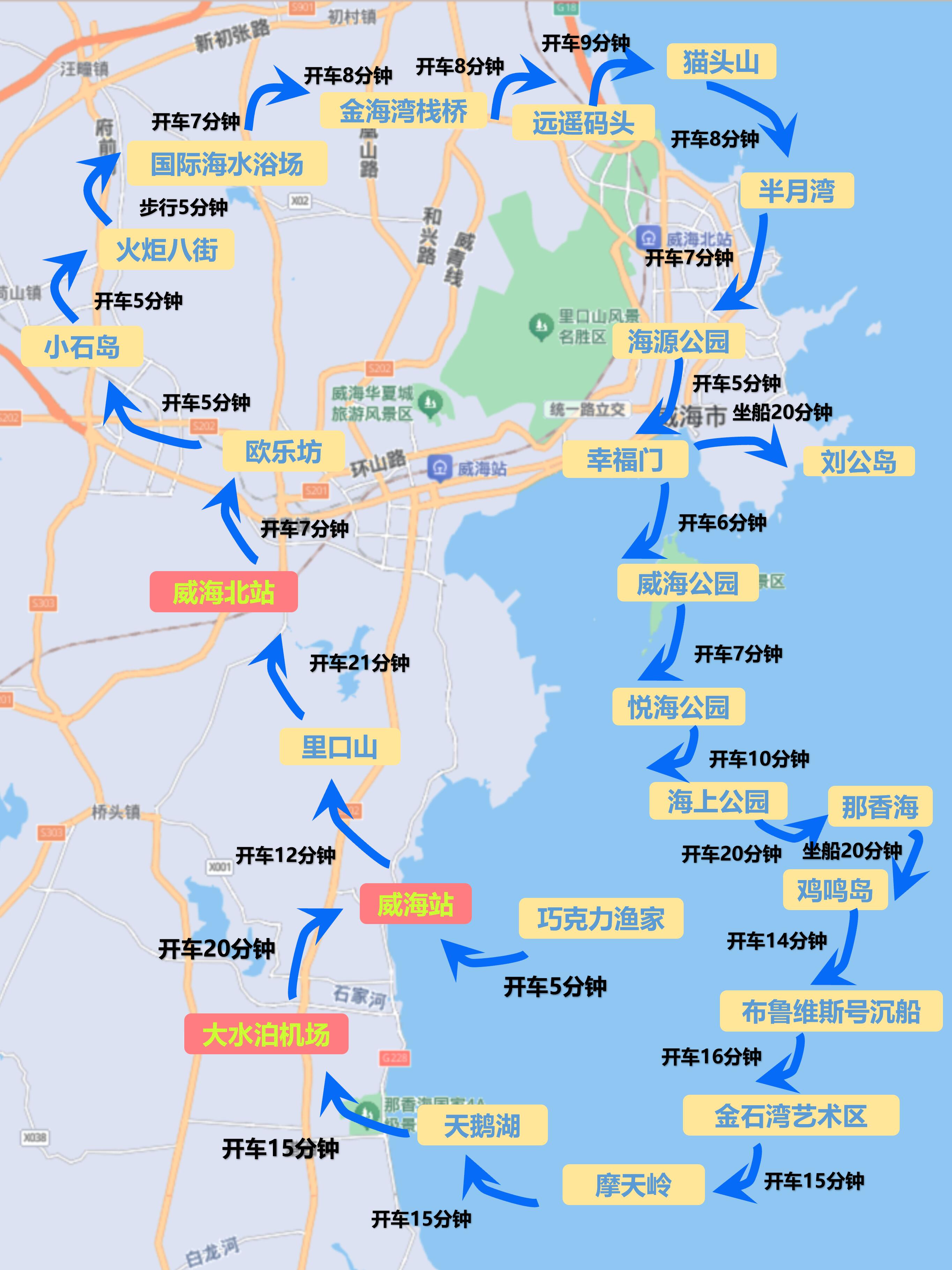 缠了一个生活在威海20年的土著闺蜜,整合熬夜手写了这份威海地图攻略😝把威海的真实情况和重点都写了,分享出来给大家看看👀