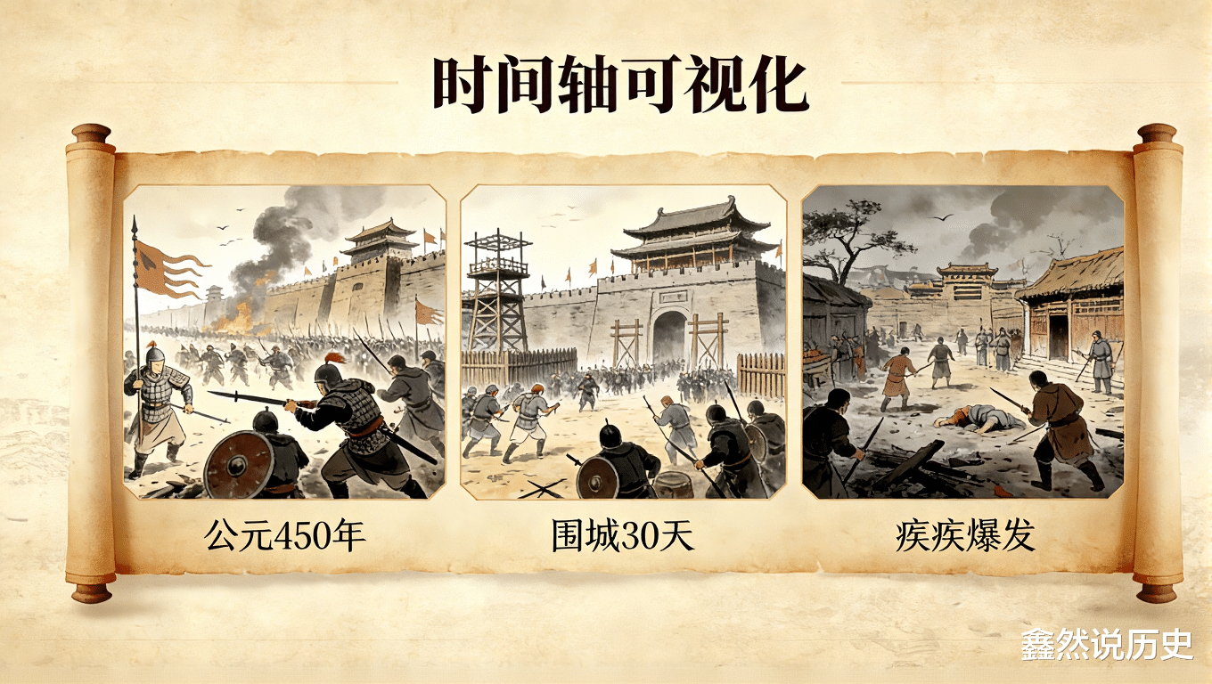 更关键的是,北魏军队的组成暗藏隐患,属于“多族群混合部队”,军中士兵多为丁零、匈奴、氐羌等被强征的胡族,本就对拓跋焘心怀不满,内部凝聚力薄弱。臧质精准抓住这一弱点,将拓跋焘劝降的书信抄录后射回魏营,还附加悬赏:“杀拓跋焘者赏丝绸万匹,封万户侯”,通过精准攻心与利益诱导分化敌军。悬赏令一出,北魏军营人心惶惶,数百士兵陆续投降。加之江南春季潮湿,围城后期魏营爆发瘟疫,每天死伤数百人,战斗力彻底崩盘,上演了后勤与卫生保障缺失引发的战场危机。与此同时,刘宋水军沿淮河逼近,威胁北魏后路,拓跋焘无奈之下,只能焚烧攻城器械,狼狈北撤。