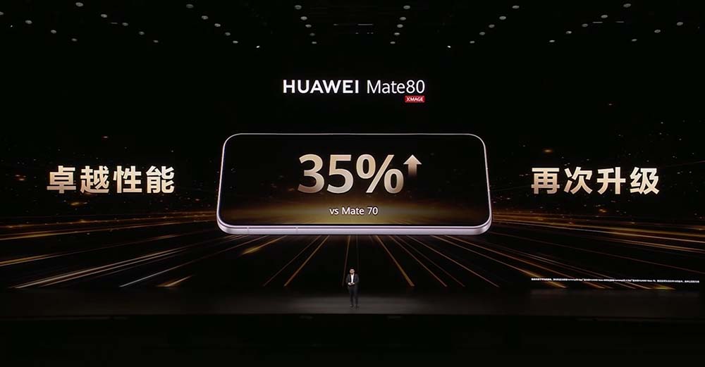 Mate 80相比上代Mate 70,整机性能提升幅度超过35%。