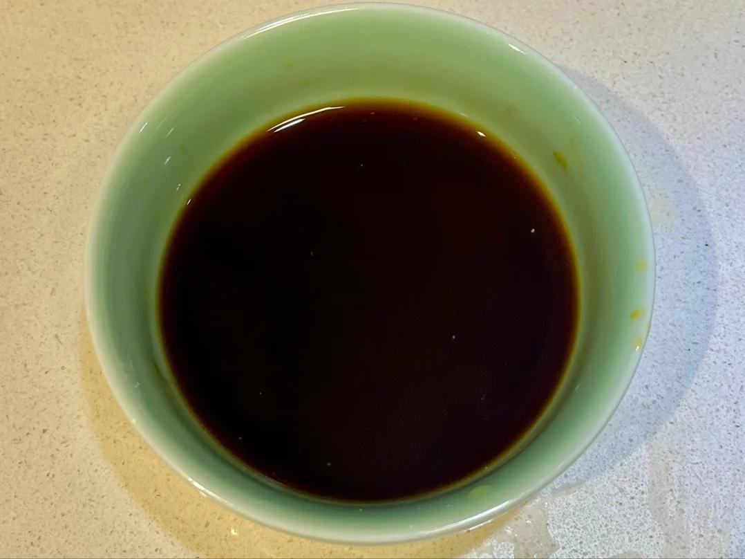 1、第一步先调酱汁。找个小碗,挖 2 勺柱候酱进去,再挖 2 勺沙茶酱,接着来 2 勺蚝油,最后加 2 勺水,拿筷子这么一搅和,酱汁就调好了。